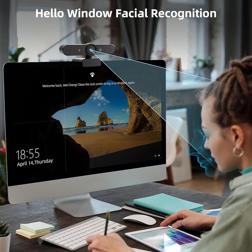 【Windows Hello 3D dynamic Facial Recognition】- This webcam is compatible with Windows Hello for Windows 10/11, enabling you to unlock your computer easily and quickly with 3D dynamic face recognition, avoid others unlocking your computer with still photos.
