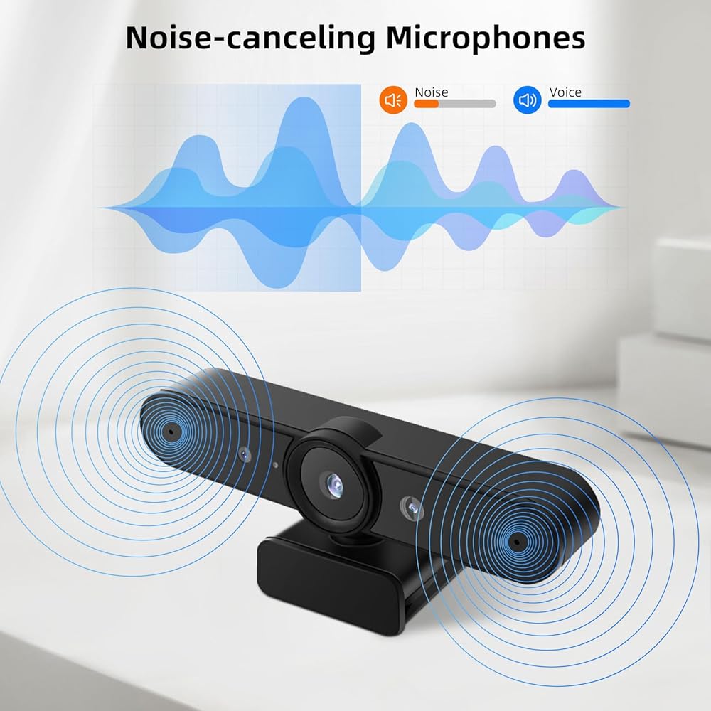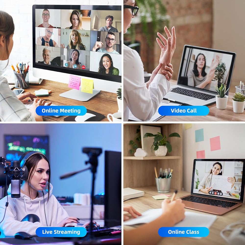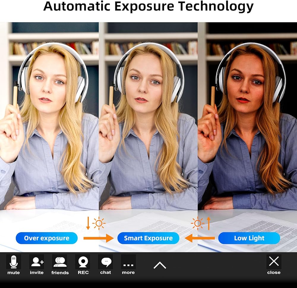 【Automatic Exposure & Auto Focus】- This computer camera adopts automatic exposure and auto focus technology, which will automatically adjust the exposure and gain level of the video based on the lighting conditions of your space, providing clear images in both dim and overly bright situations.