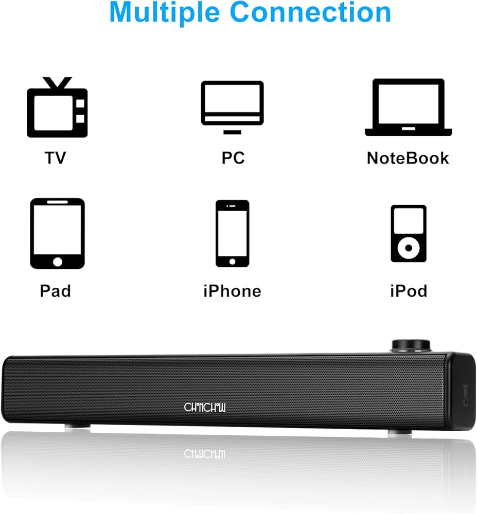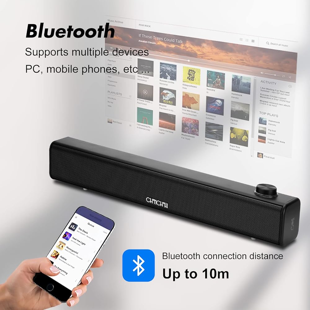 • ★USB Powered Mini Soundbar---2A/5V the supply needed,this wired Bluetooth computer speaker will offer the high quality music with big volume and powerfull bass.