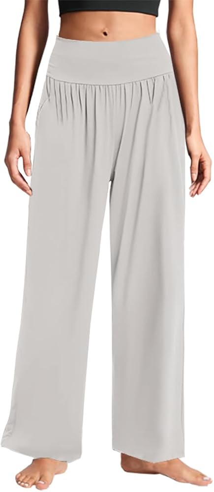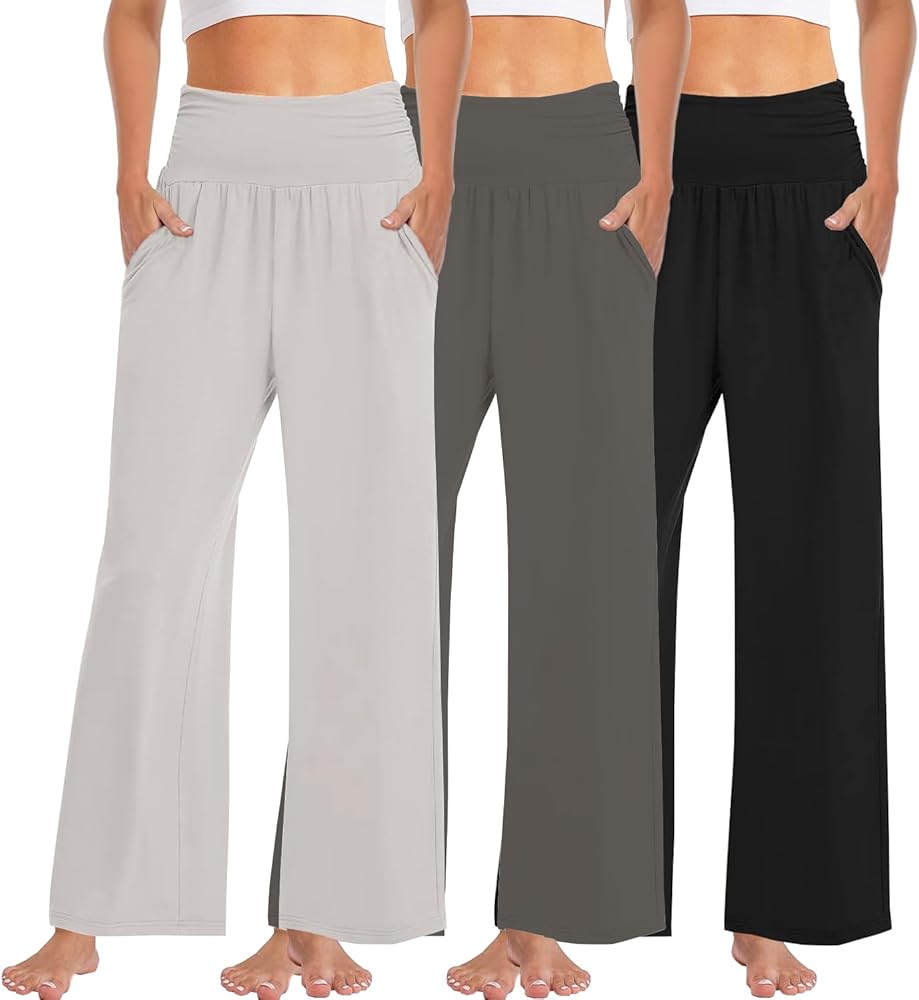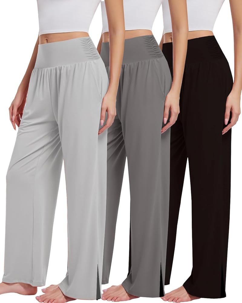 3PACK Womens Wide Leg Yoga Pants High Waisted Adjustable Tie Knot Joggers Loose Yoga Sweatpants Comfy Lounge Pajama