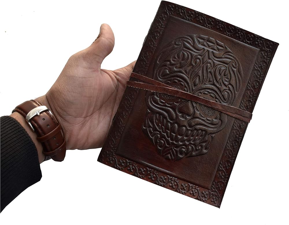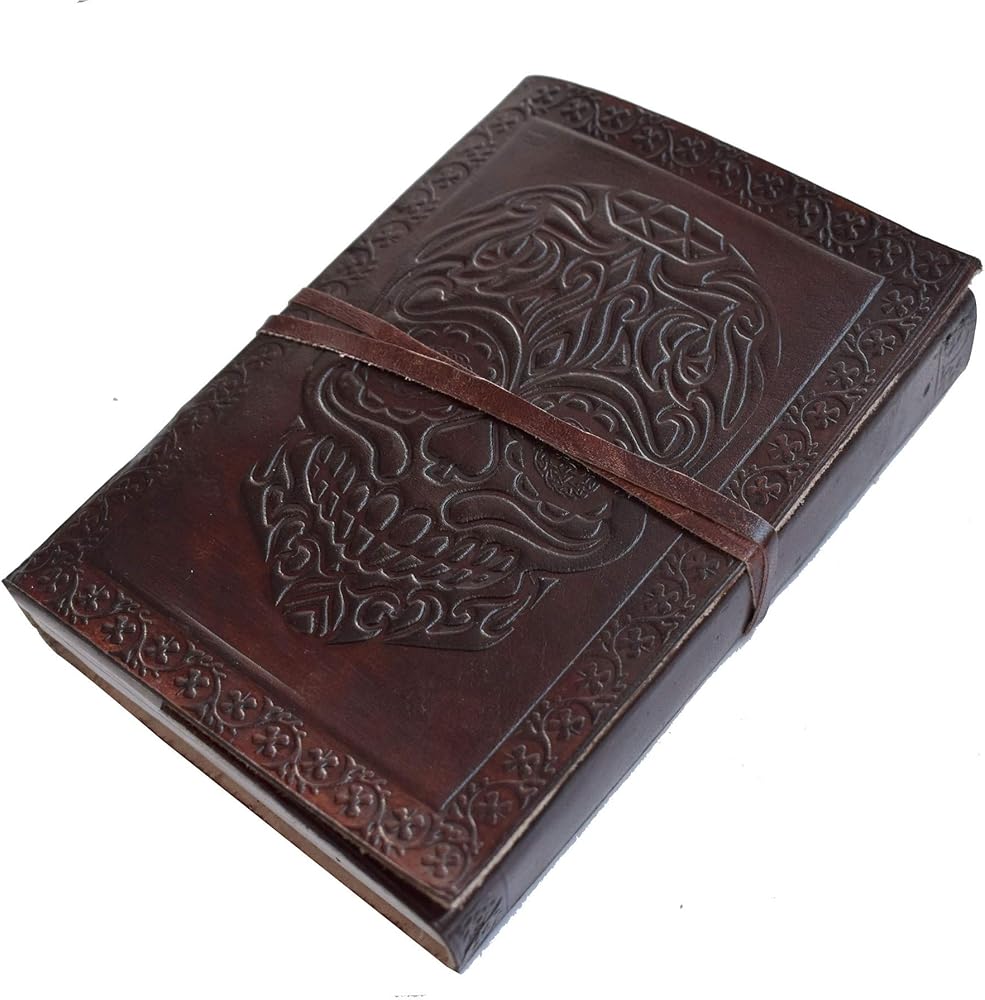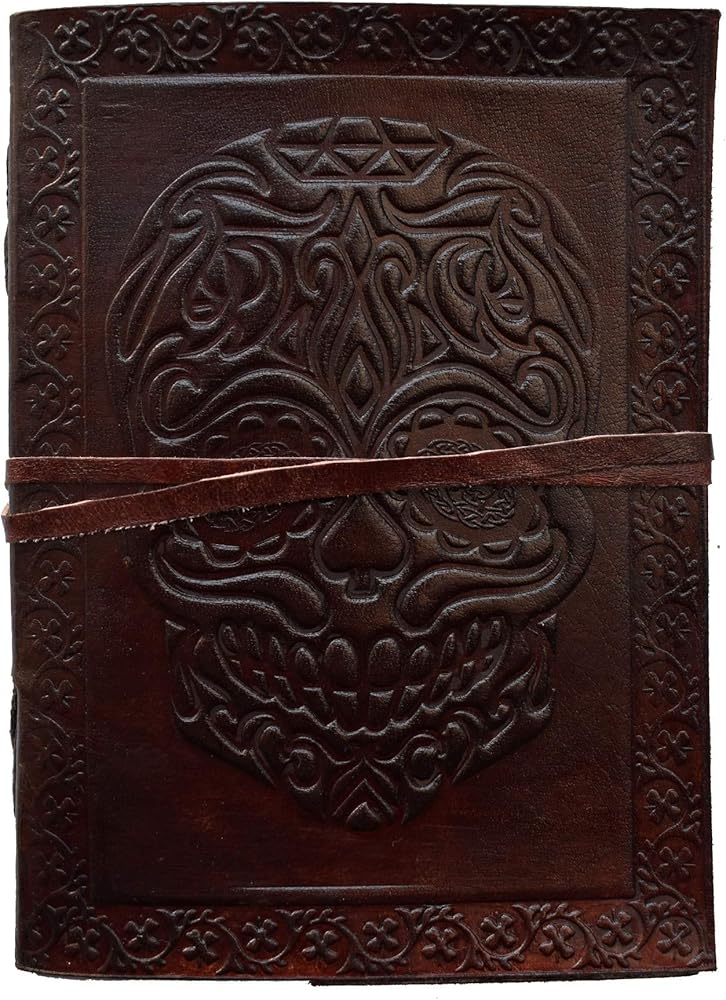Day of Dead Leather Journal Skull Celtic New skull Embossed Design Travel Diary Handmade Notebook For Men & Women Antique Quality Unlined Cream Blank Paper Perfect for Notes Art Sketchbook Marks The New Concept Of Design - Rustic Our Leather Celtic Journals Are Perfect For Use As A Leather Diary, Writing Journal, Travel Journal, Address Book, Sketch Book Or .The Journals Are All Genuine Leather Of Premium Quality Handmade Linen Parchment Paper. The Environmentally Friendly Paper Is Wonderful With All Types Of Media. All The Leather Celtic Journals Come With A antique Strap For Keeping The Journals Closed