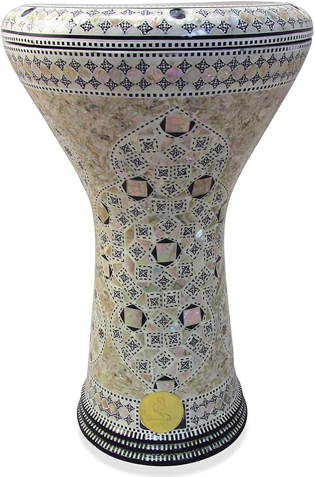 هذا الطبل هو طبل عالي الجودة مع زخارف أصداف مصرية لامعة. دربوكة جديدة مذهلة مقاس 17 بوصة، تأتي بجلد صناعي فائق الوضوح وحقيبة ممتازة.