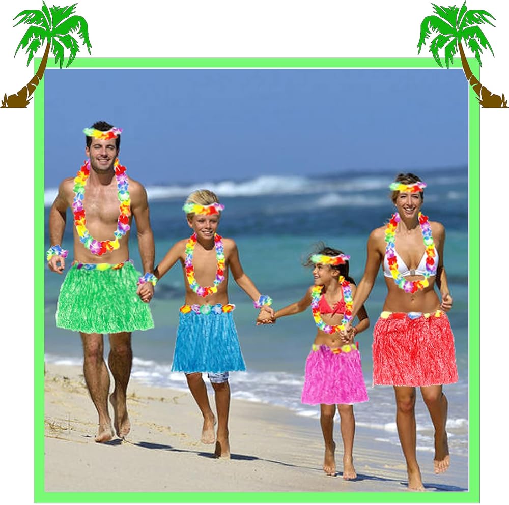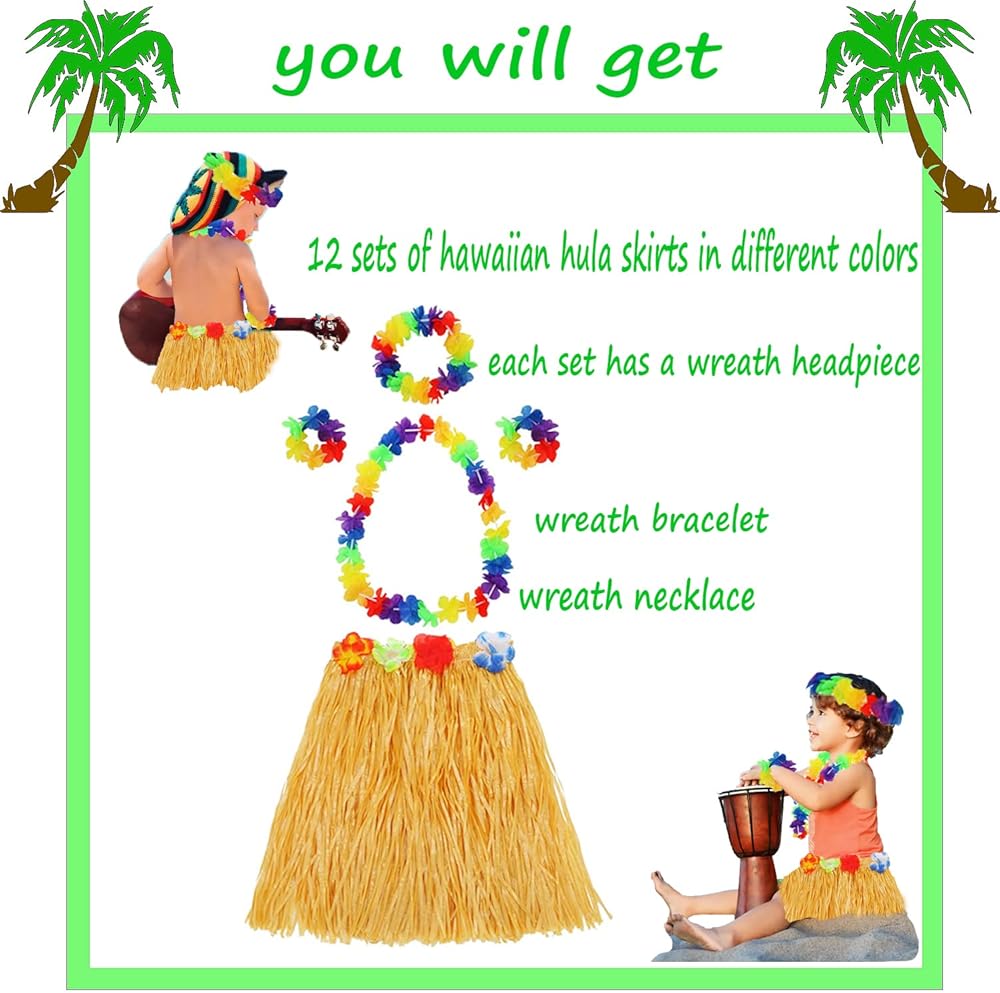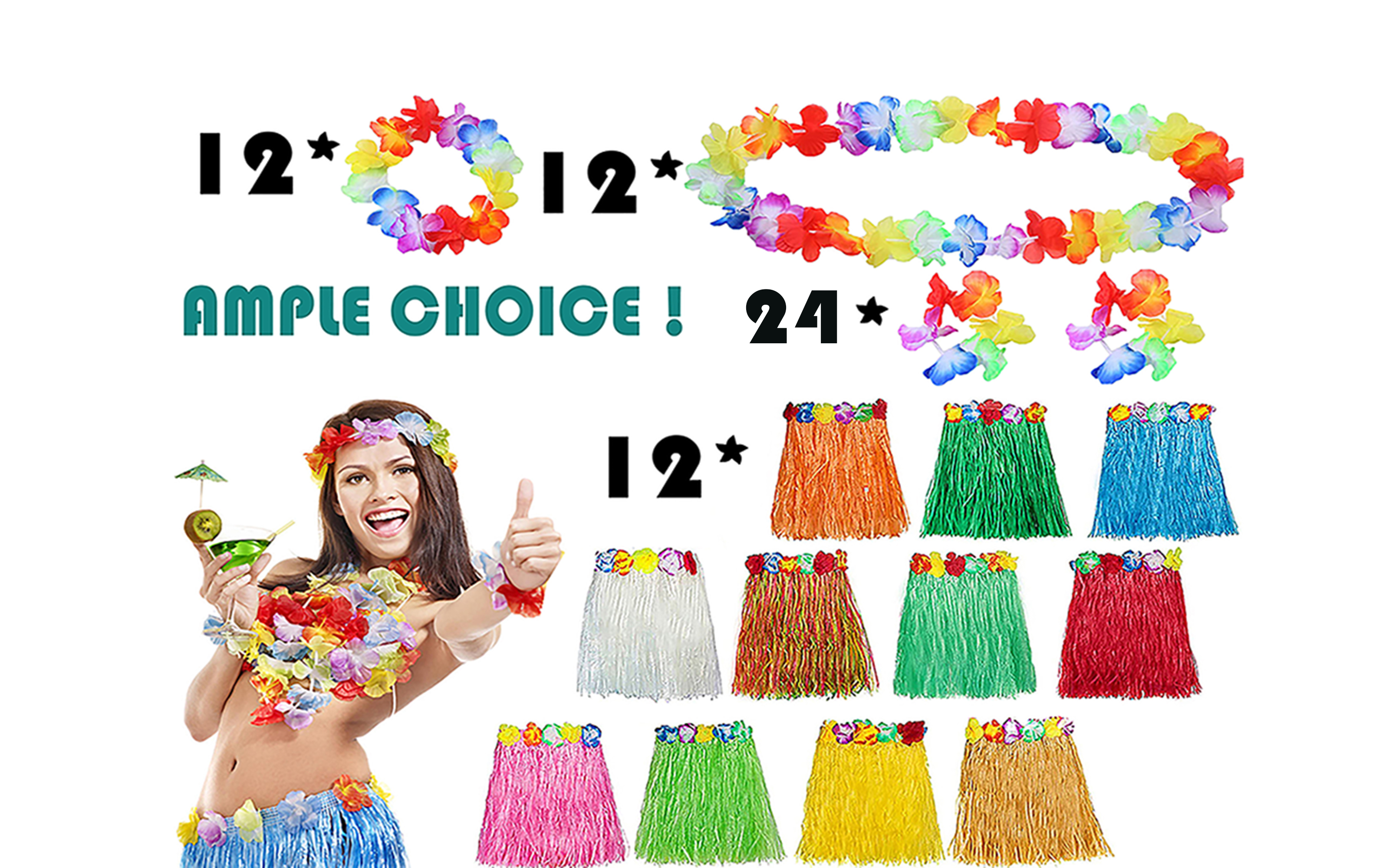 تجميع ضخم: مجموعة مكونة من 60 قطعة من تنانير هاواي هولا، 12 قطعة من ملابس حفلات هاواي لوو + 12 قطعة من قلادة هاواي + 12 قطعة من قلادة هاواي + 24 قطعة من هاواي، مجموعة يمكن أن تلبي مستلزمات حفلات هاواي الخاصة بك.