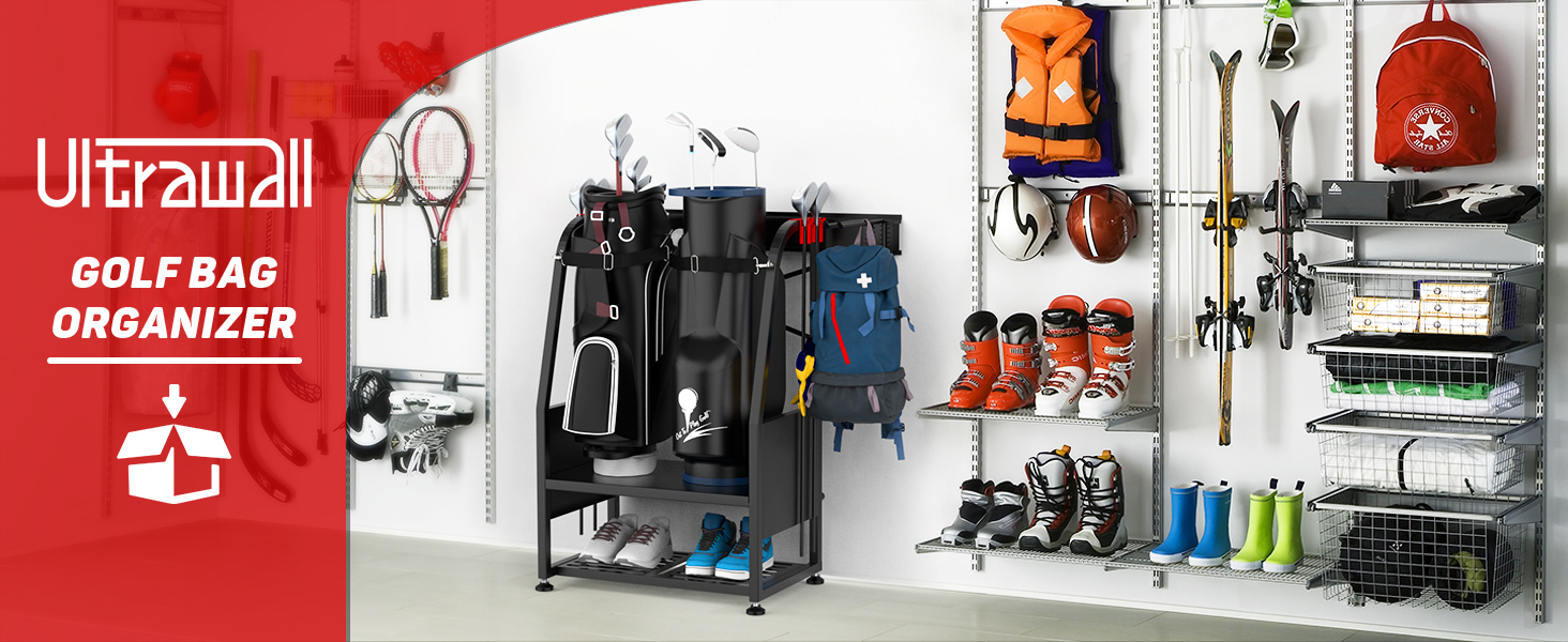 • متعدد الوظائف: يتميز منظم الجولف Ultrawall برف مفتوح للأحذية والقفازات والإكسسوارات الأخرى. كما أنها تشتمل على خطاف كروي قابل للإزالة وأربعة خطافات جانبية لنادي الجولف، مع خطاف طويل للغاية لتخزين حقيبة الظهر على القضبان المرفقة. الحزام المتضمن مصمم لمنع سقوط حقيبة الجولف الخاصة بك.