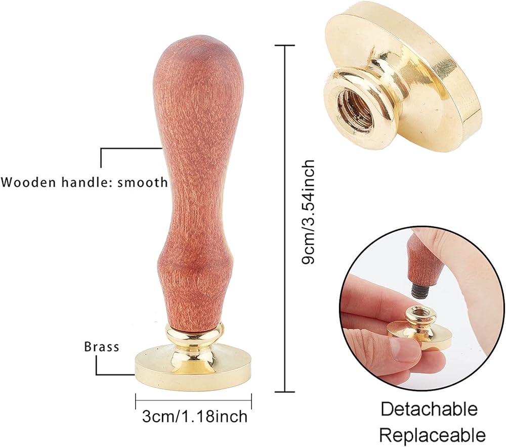 • ختم ختم الشمع: ختم الشمع القابل للإزالة مصنوع من مقبض خشبي ونحاس، قوي ومتين، مضاد للصدأ وثابت اللون، ناعم ولامع، بصمة واضحة، سهل التنظيف، متين وقابل لإعادة الاستخدام