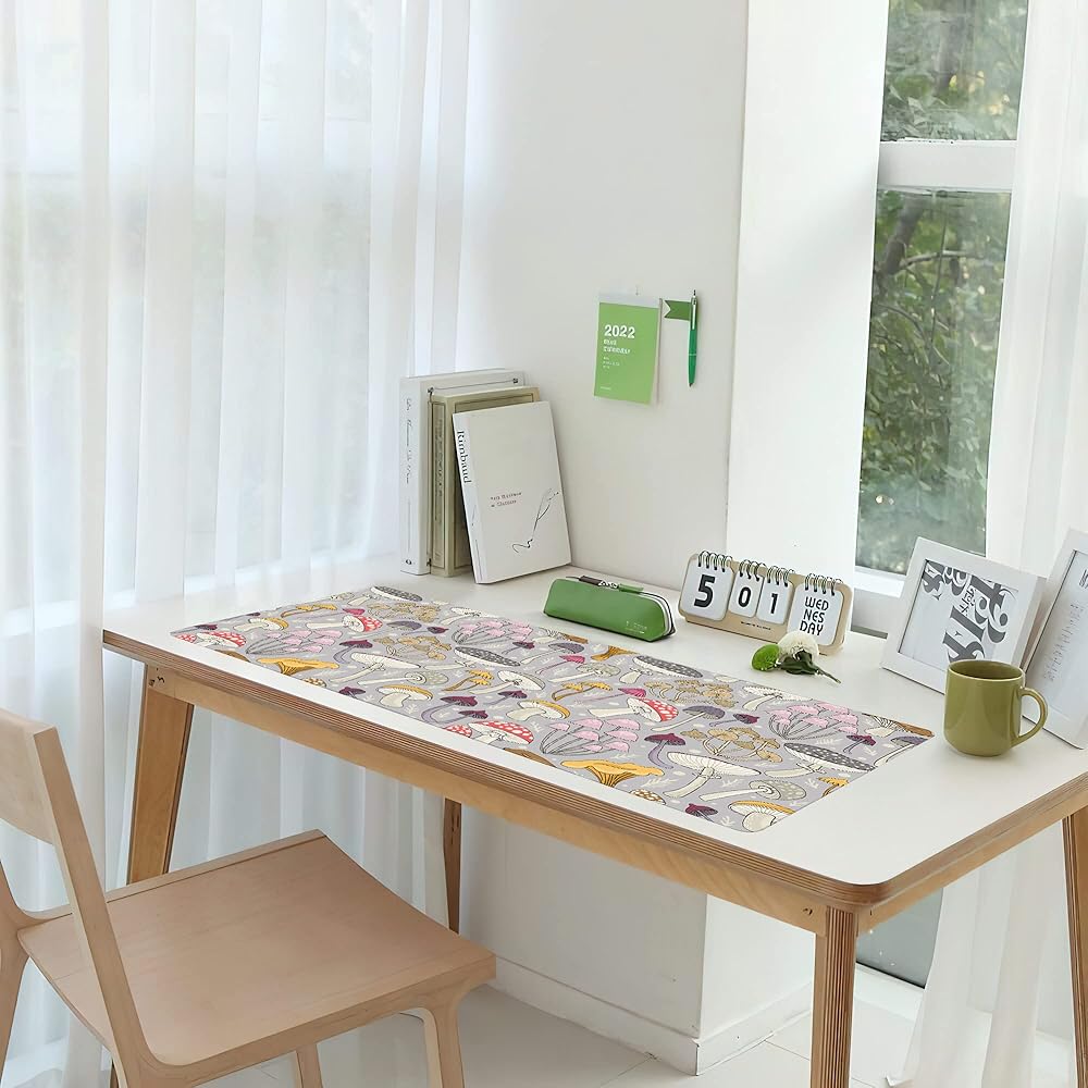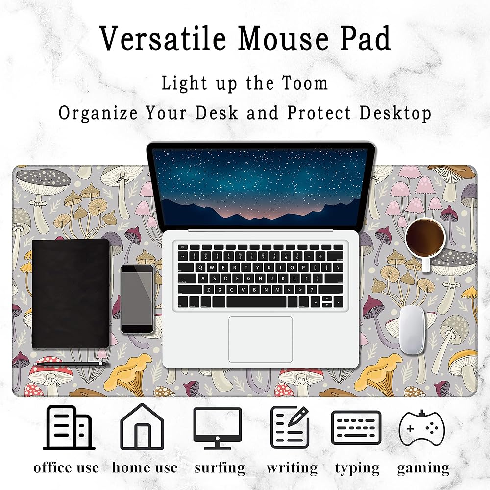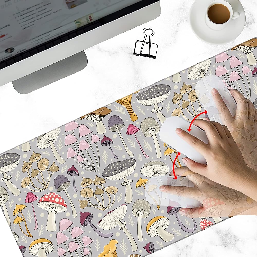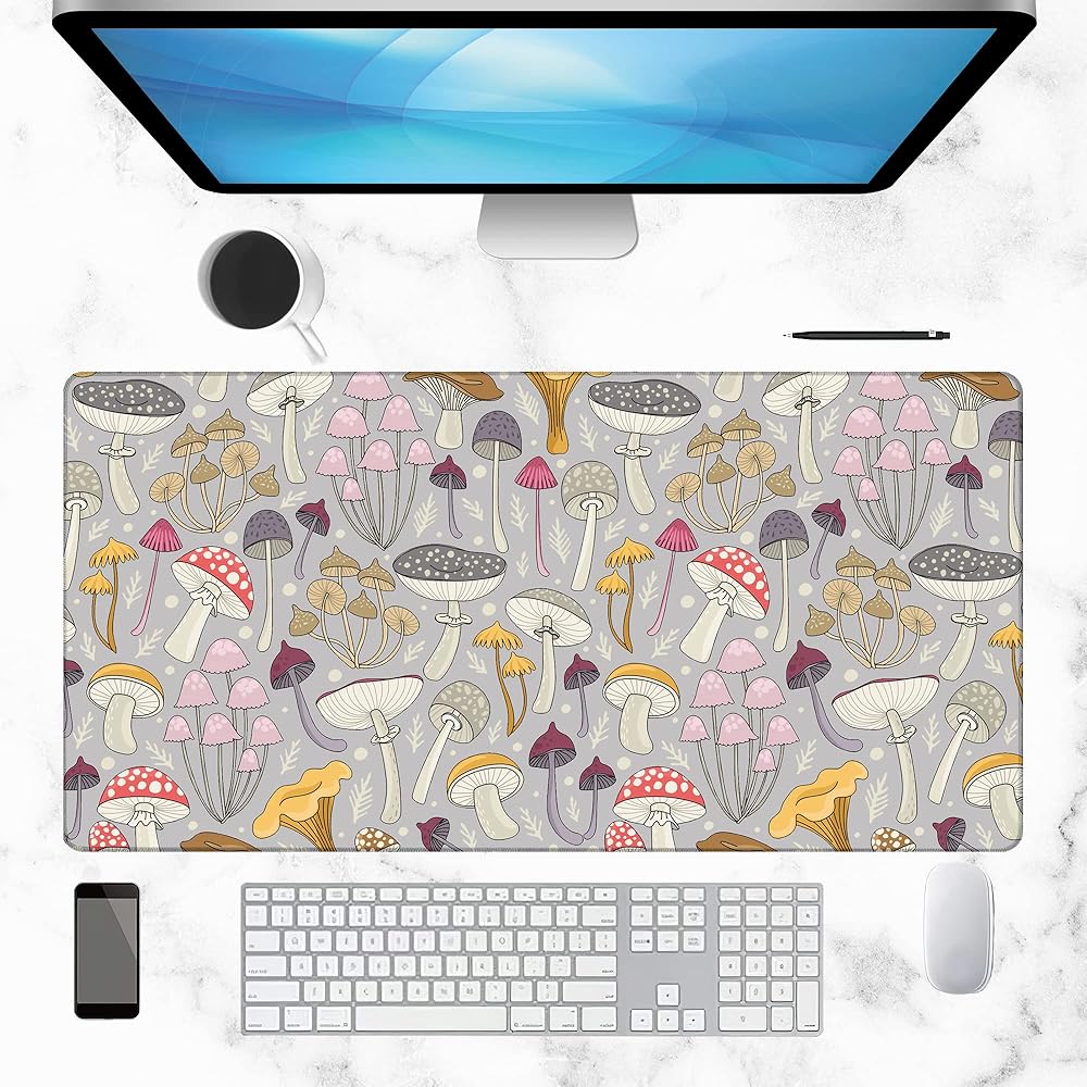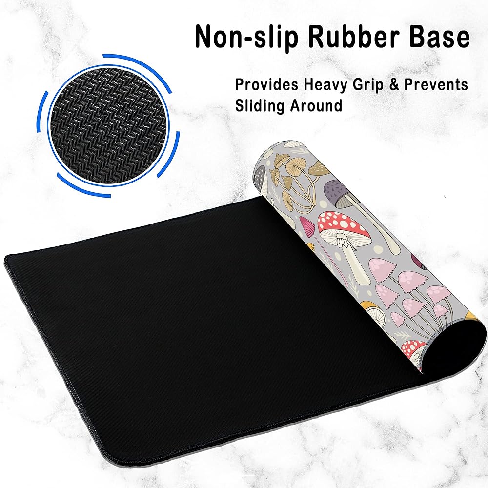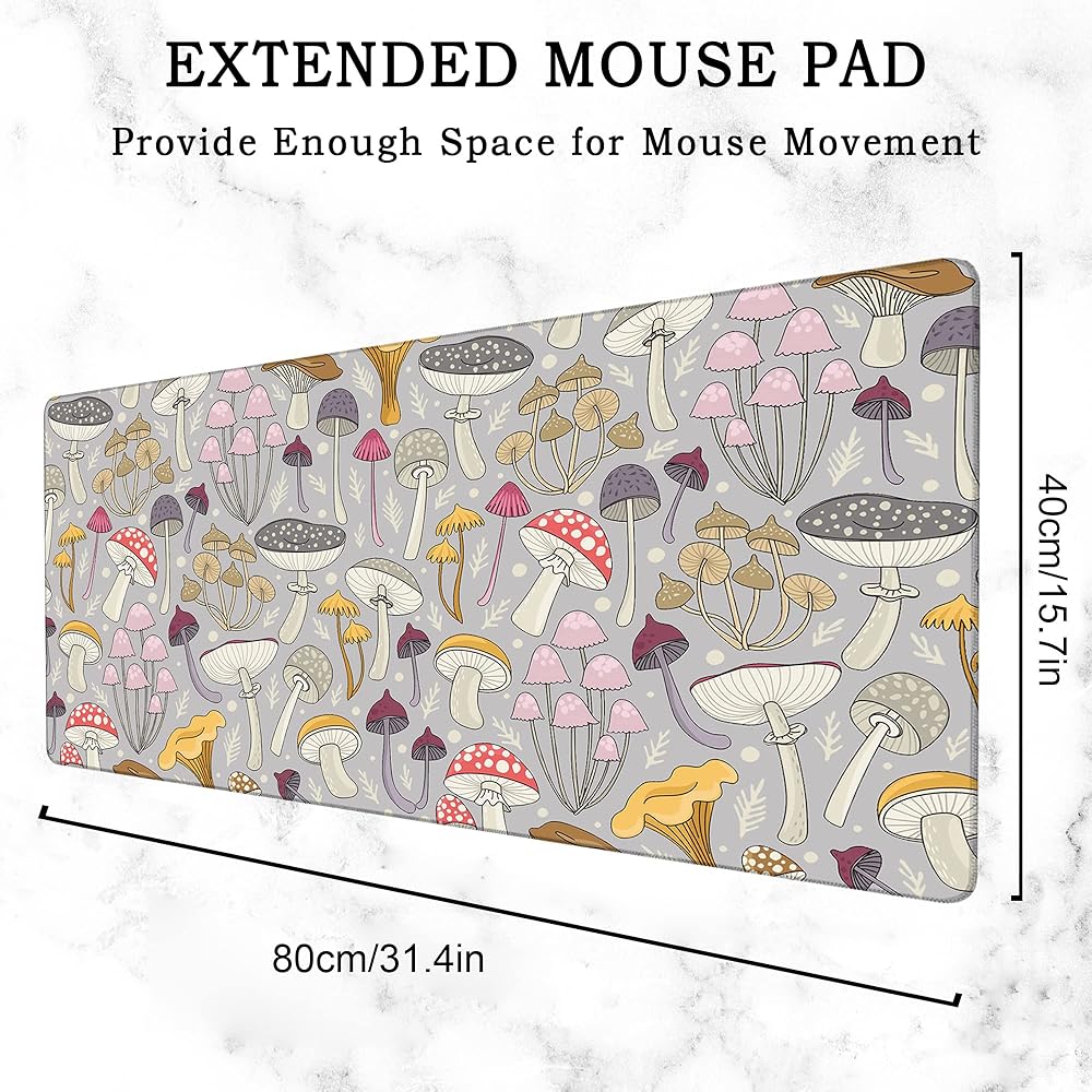 حصيرة مكتب الألعاب كبيرة، لوحة ماوس ممتدة على شكل فطر ملون، لوحة ماوس مطاطية غير قابلة للانزلاق حواف مخيطة، ملحقات تزيين سطح المكتب للمكتب المنزلي 31.5 بوصة × 15.7 بوصة