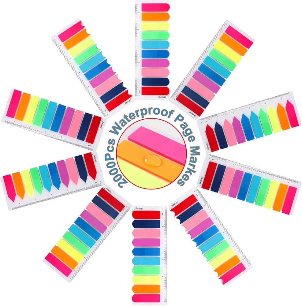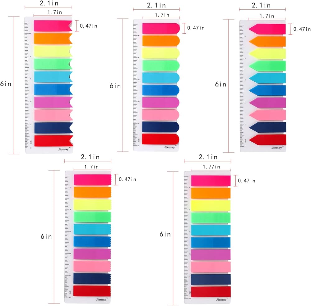◀ 【سوف تحصل على تصميم عصري جديد 10 مجموعات من 2000 قطعة من علامات التبويب اللاصقة الملونة الفلورسنت، و10 ألوان نيون أساسية، و5 أشكال ومسطرة شفافة مقاس 5.5 بوصة، كل مجموعة تحتوي على عبوة فردية.