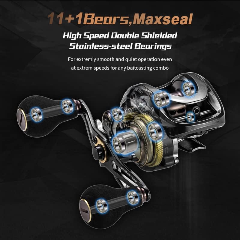 【11+1BB Ultra Smooth Performance】-Real 11+1 Double shield stainless steel bearing, enjoy ultra smooth performance and soft fishing feeling,save your energy ,easy long casting ,even after thousand time of casting it still remain good quality