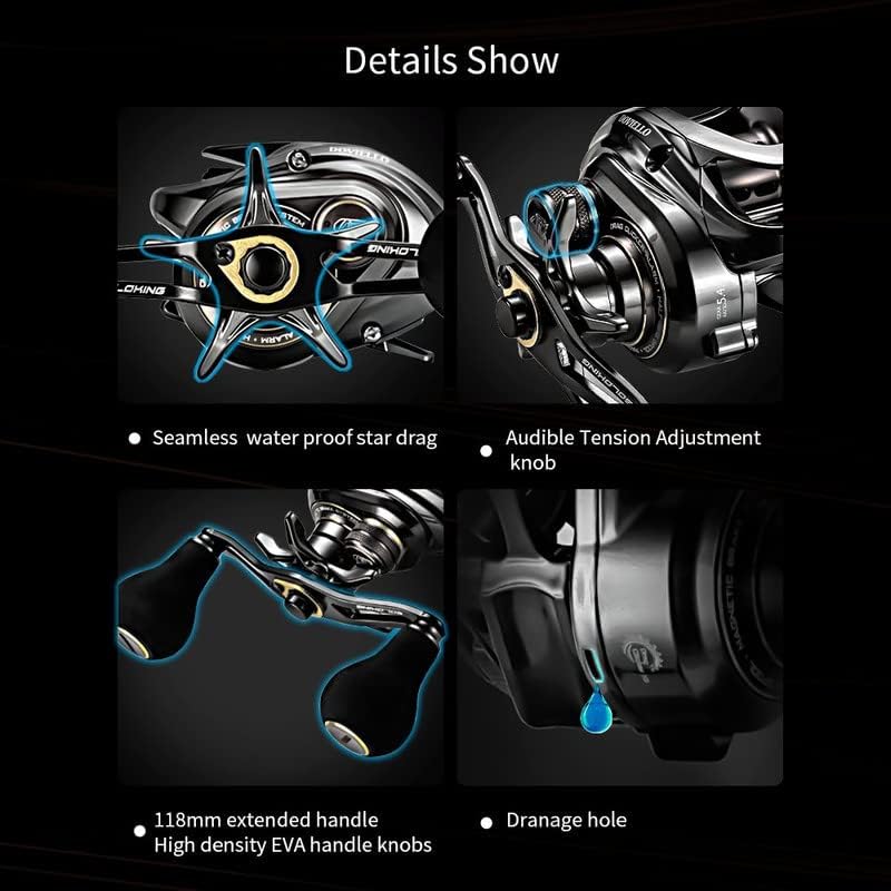 【Innovative Drag Clicker Sound Kit】- Adopt newest drag clicker sound kit, which makes HIAW baitcasting reel automatically alarm"dadada"sound when fish bite the lure, help you detect every fish nibble signal no matter how small signal is.decrease the chance of loss fish