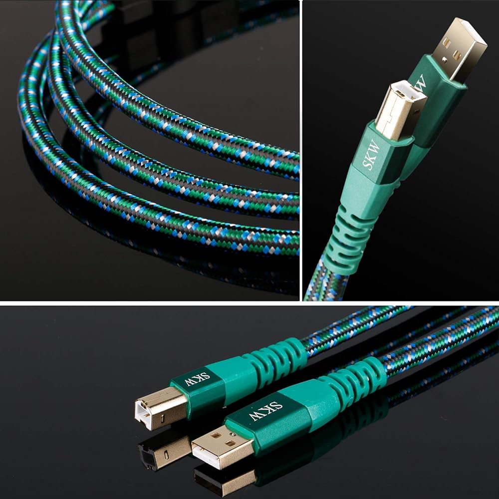 SKW USB 2.0 A male to B male high speed SKW cable is 24K gold plated with standard Type-A USB connector and Type-B connector.