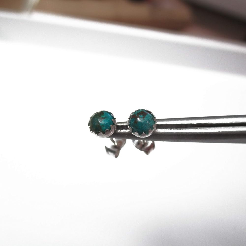 These earthy greenish blue earrings are handmade using genuine Chrysocolla gemstones set in a Sterling Silver bezel stud earring setting. They would make a great second hole or cartilage stud. They are simple, lovely and high quality and should last years. They come nicely packaged.