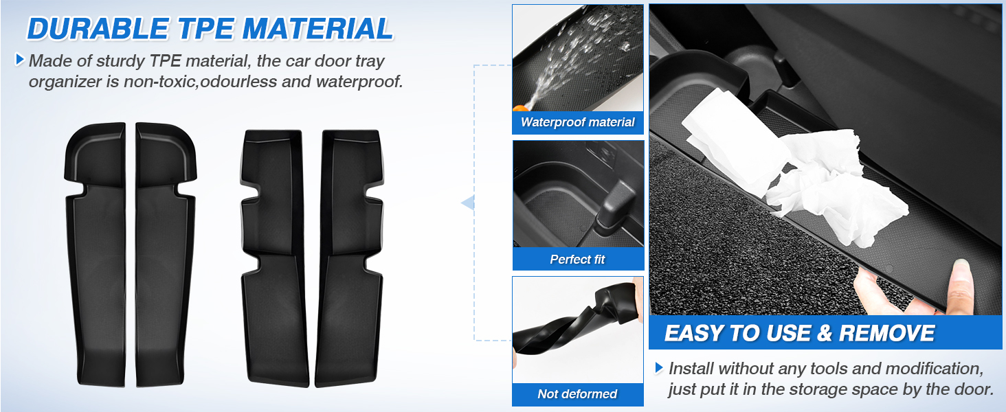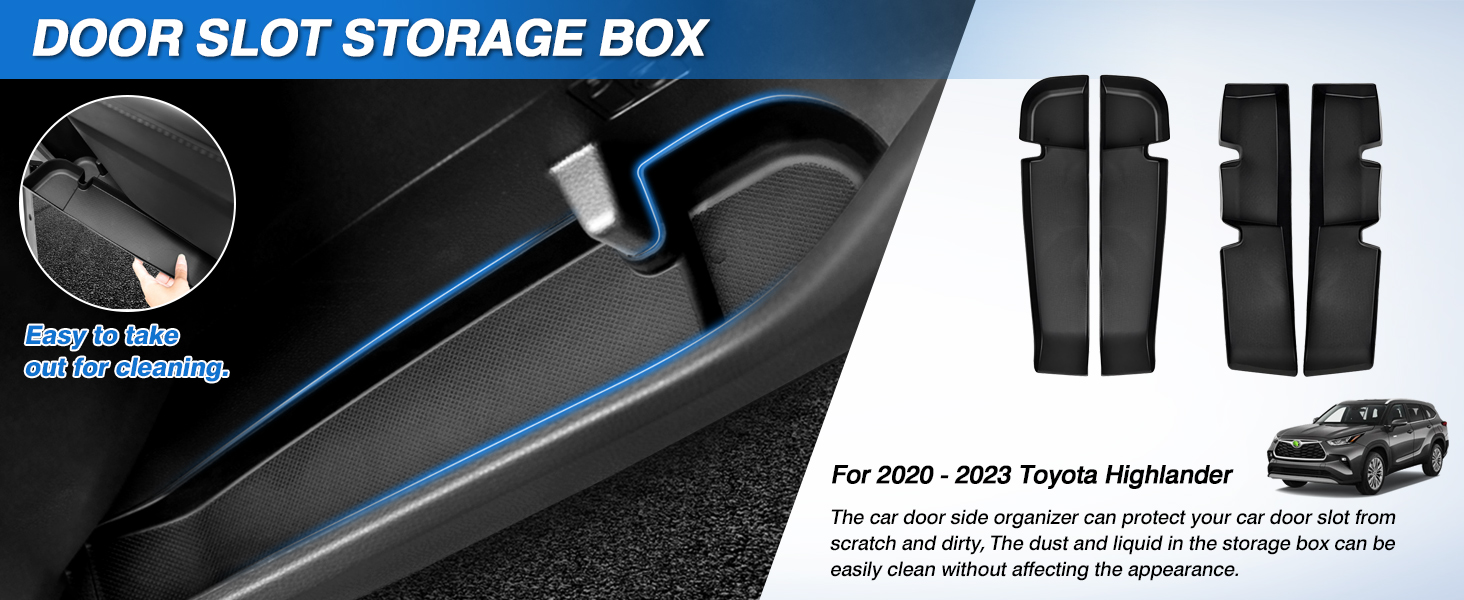 【وظيفة حماية متميزة】: يمكن للمنظم الجانبي لباب تويوتا هايلاندر حماية مساحة تخزين باب هايلاندر الخاصة بك من الخدوش والأوساخ؛ صندوق تخزين فتحة باب تويوتا هايلاندر سهل التنظيف. يمكن تنظيف الغبار والسوائل الموجودة في صندوق التخزين بسهولة دون التأثير على المظهر.