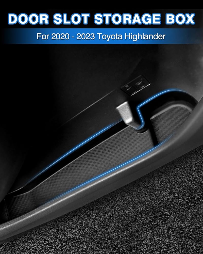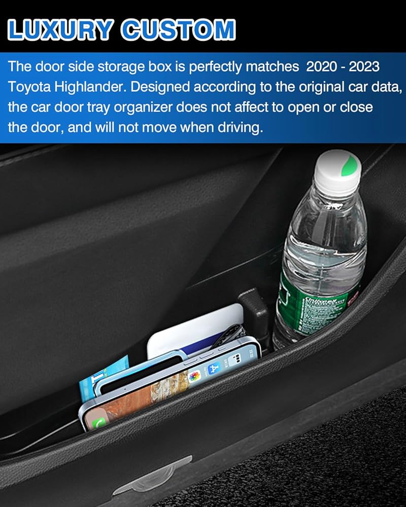 【مخصص فاخر لهايلاندر 】: صندوق التخزين الجانبي للباب يتطابق تمامًا مع 2020 2021 2022 2023 2024 تويوتا هايلاندر. مصمم وفقًا لبيانات السيارة الأصلية، لا يؤثر منظم صينية باب السيارة هايلاندر على فتح أو إغلاق الباب، ولن يتحرك أثناء القيادة.