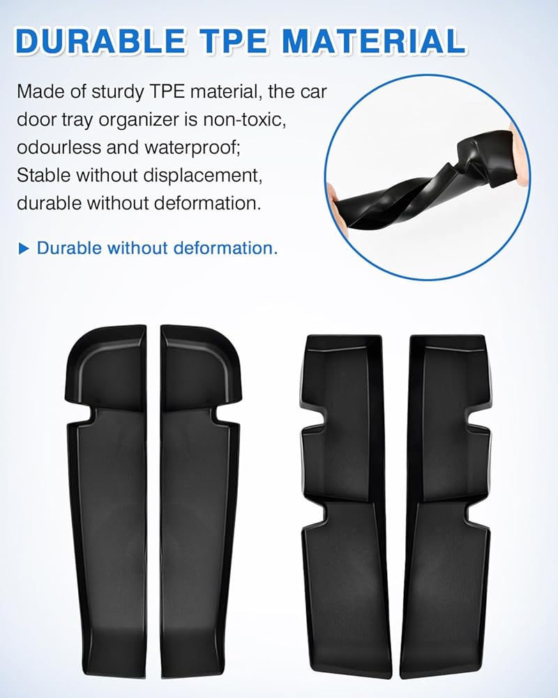 【مادة TPE متينة】: مصنوعة من مادة TPE المتينة، منظم صينية باب السيارة Toyota Highlander غير سام وعديم الرائحة ومقاوم للماء؛ مستقر بدون إزاحة، متين بدون تشوه.