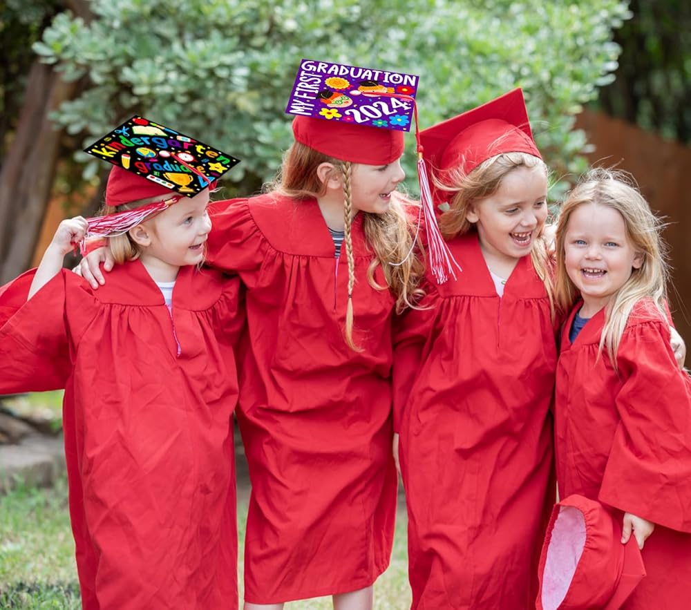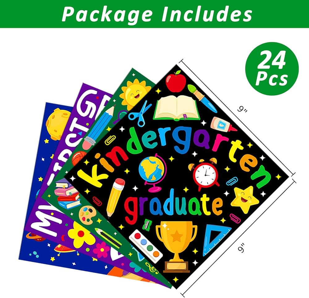 • 【Pack of 24】: You will receive 24 sheets kindergarten graduation cap stickers in 4 different styles, which measure about 9 x 9 inches/ 23 x 23 cm in full sheet size to let your kids children daughter son little boys girls graduates decorate their own Graduation cap topper.