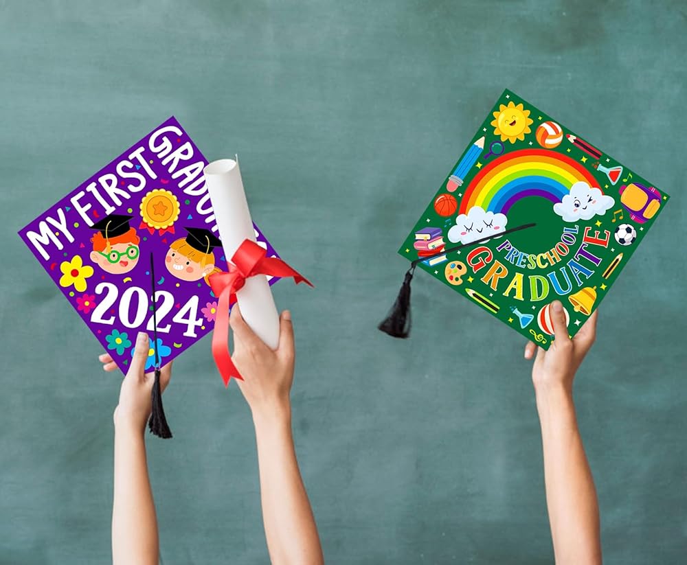 PETCEE 24PCS Kindergarten Graduation Cap Stickers for Kids 2024 Preschool Pre-K Graduation Cap Topper Stickers Decorations My First Graduation Hat Stickers Craft Gifts for Children Boys Girls Students Daughter Son