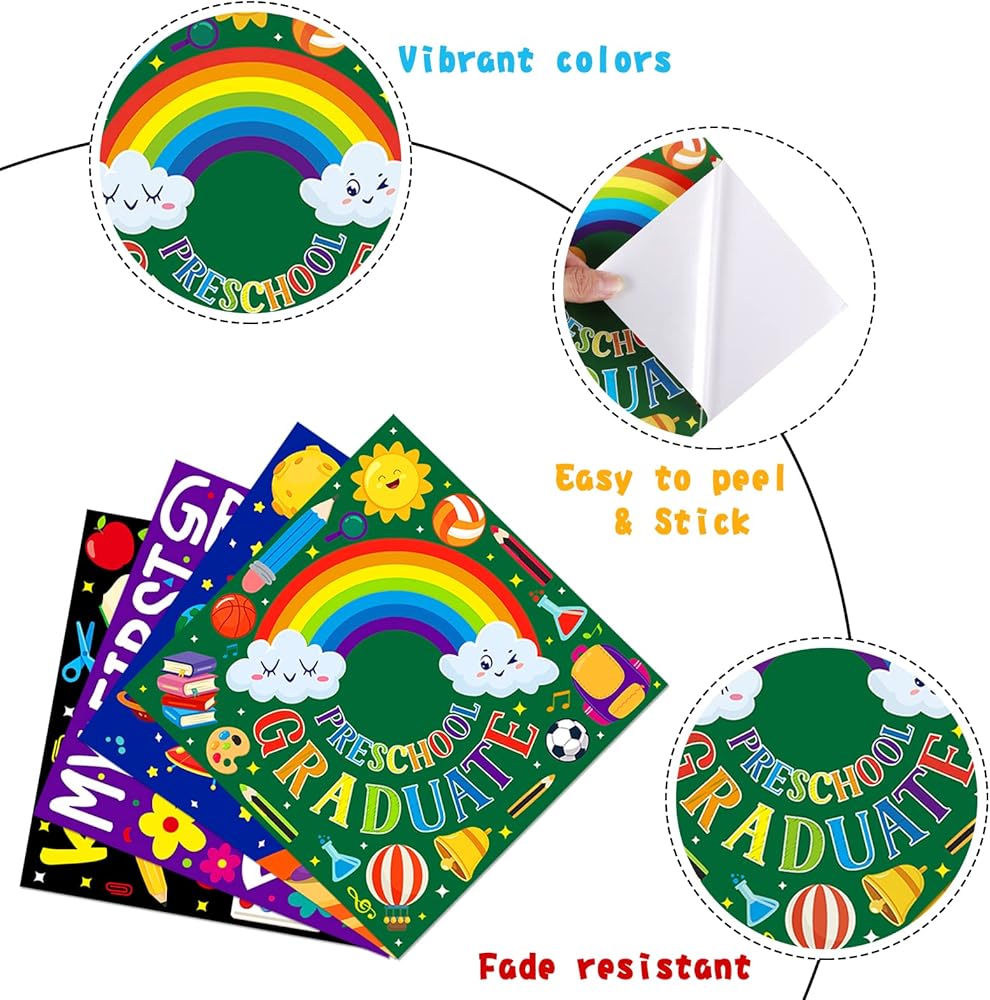 • 【Premium Material】: Our Graduation cap decorations stickers craft set are made of laminated PVC material, self-adhesive and tear-resistant, easy to remove without leaving residue. Printed with adorable patterns that can easily attract young graduates, suitable for kindergarten, preschool, pre-k, primary school children.