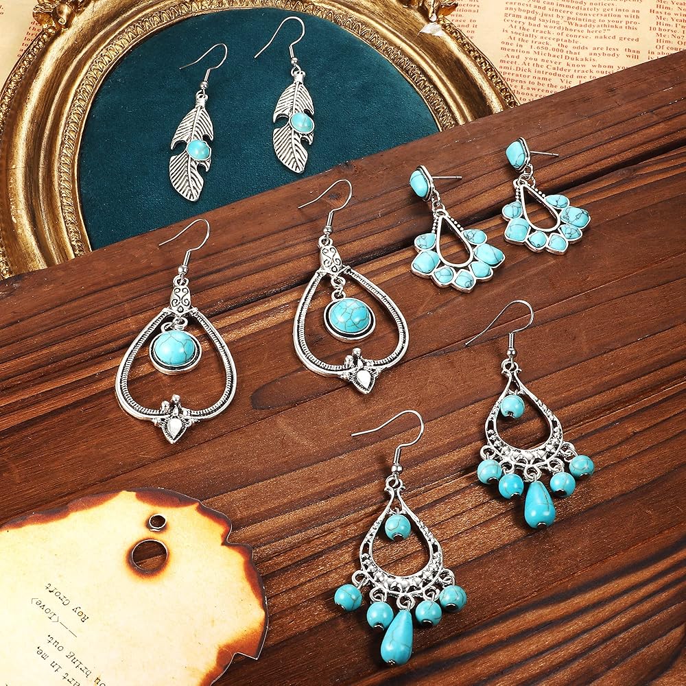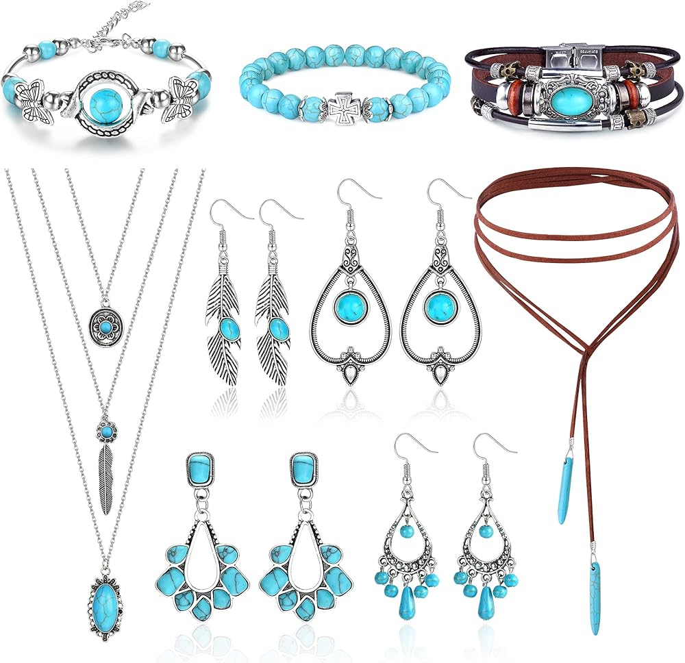 • مجموعة مجوهرات تركواز للنساء: تتضمن مجموعة المجوهرات الغربية الرقيقة قطعة واحدة من قلادة بوهو الفيروزية للنساء، وقطعة واحدة من قلادة قلادة فيروزية متعددة الطبقات، و3 قطع من سوار ذو طبقات فيروزية، و4 أزواج من الأقراط المتدلية الفيروزية. أنماط غنية فريدة من نوعها تلبية مجموعة المطابقة اليومية الخاصة بك.