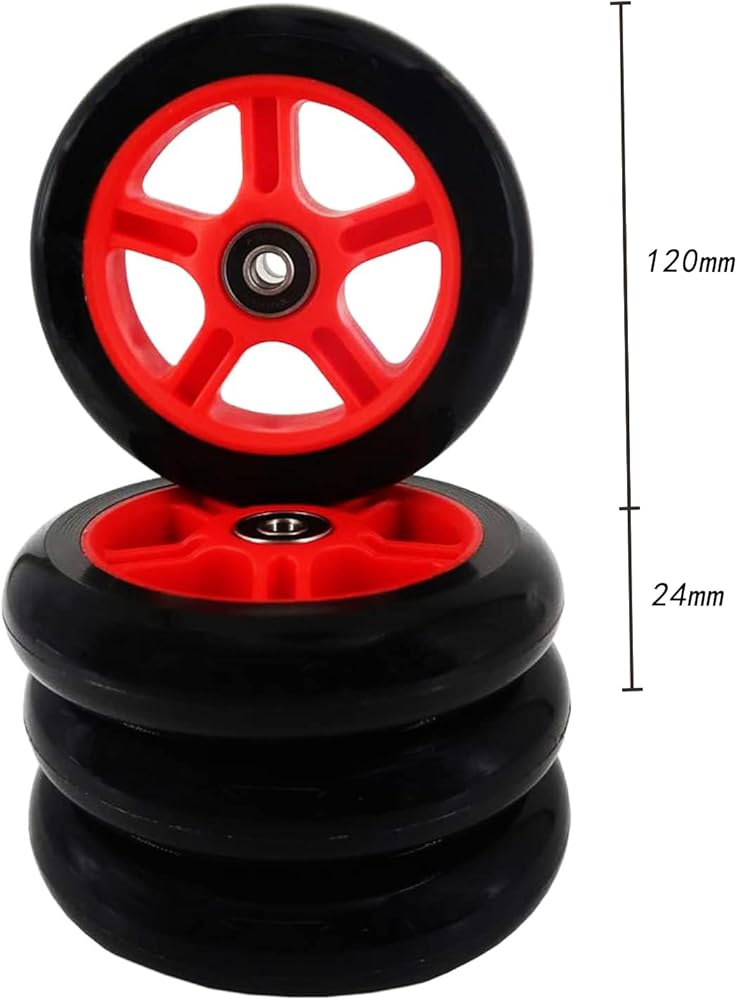 • Kick scooter wheels size: 120mm diameter * 24mm width. Black cores with 85A black PU.