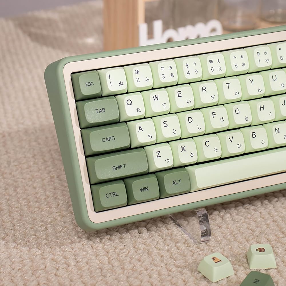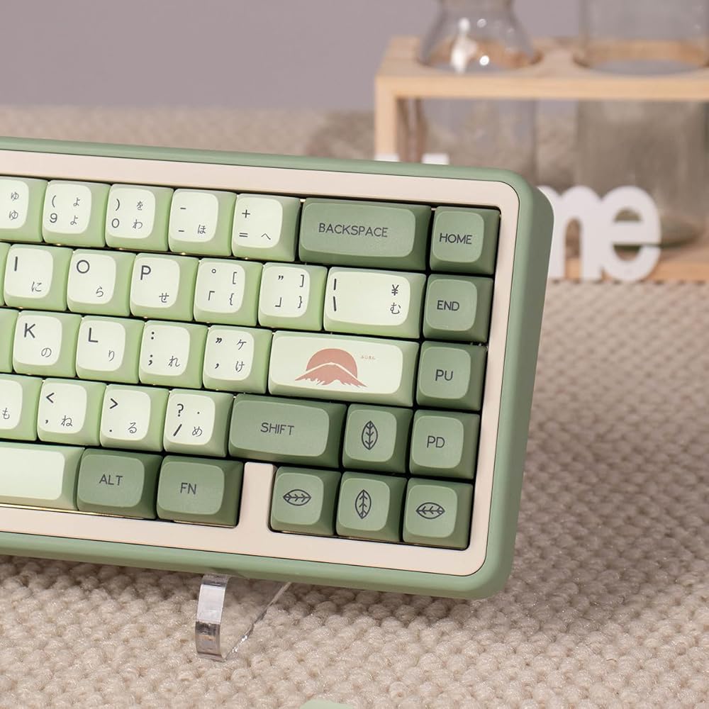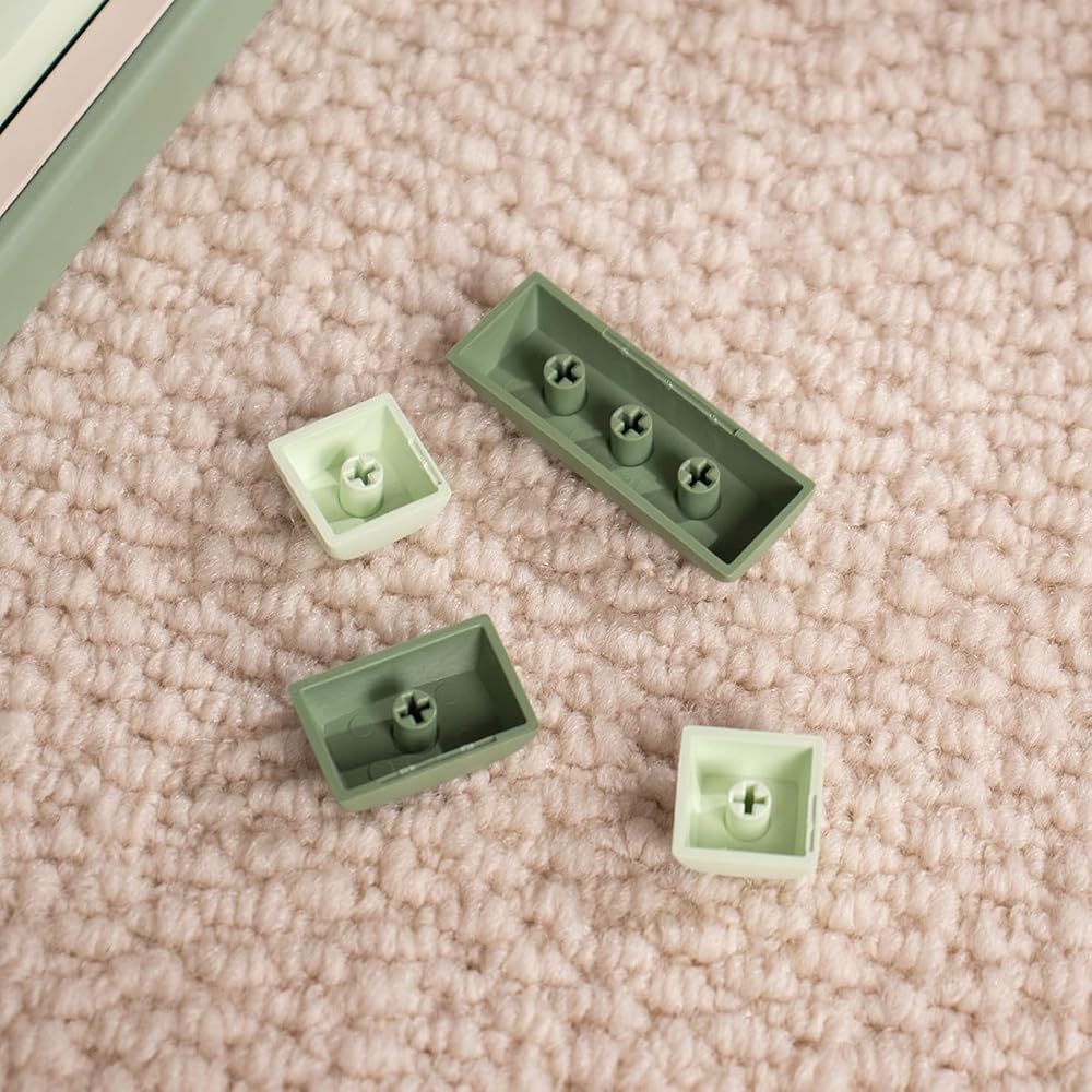 PBT Dye Sub: أغطية المفاتيح الخضراء هذه مصنوعة من مادة PBT السميكة، وسطح أغطية المفاتيح يحتوي على طلاء طارد للزيت، والذي يمكن أن يوفر لك تجربة كتابة جيدة.