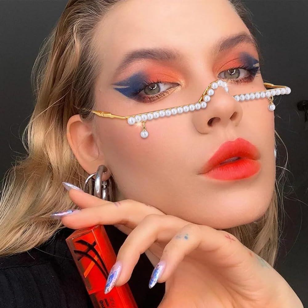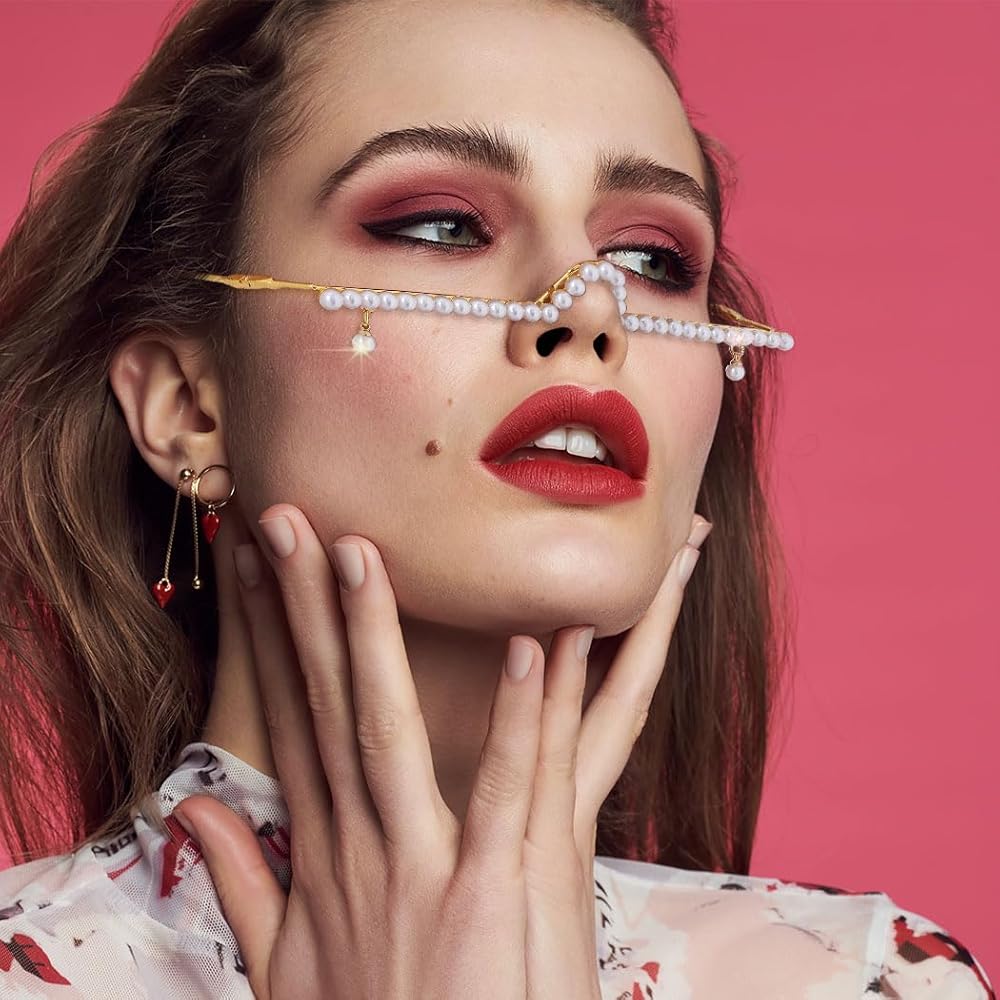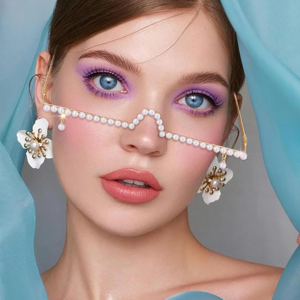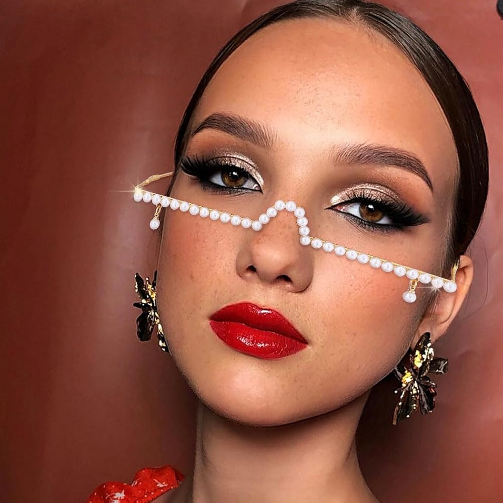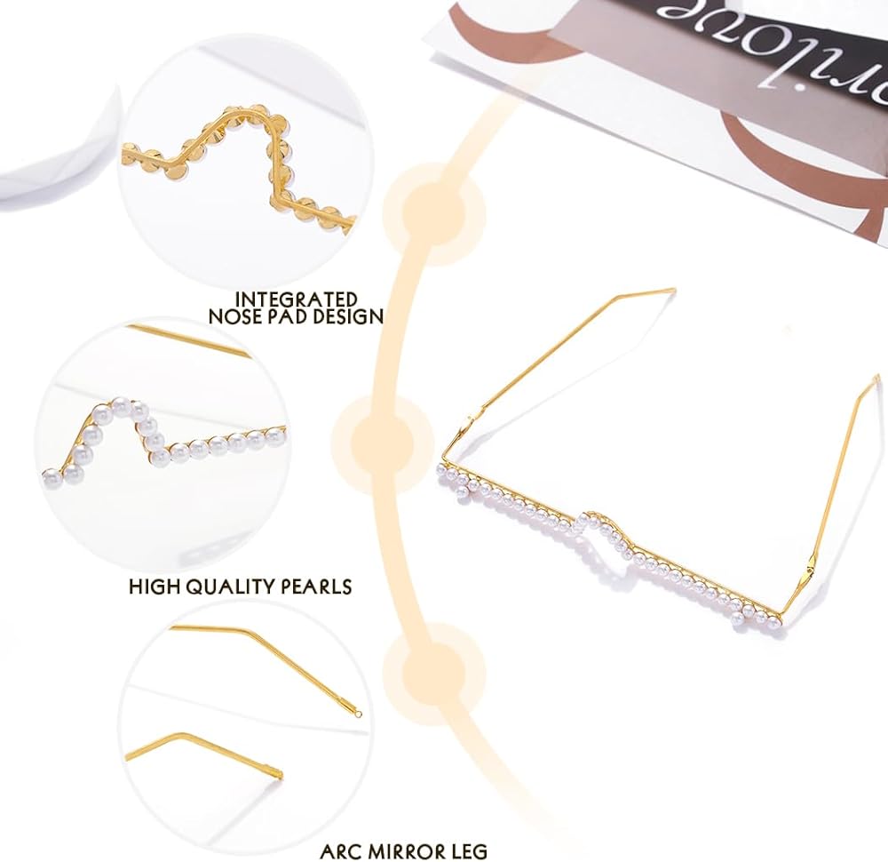 نظارات بيرل بدون عدسات مصنوعة من حجر الراين والسبائك، وصناعة ممتازة، لن تتلاشى بسهولة وتحتفظ بالألوان لفترة أطول.