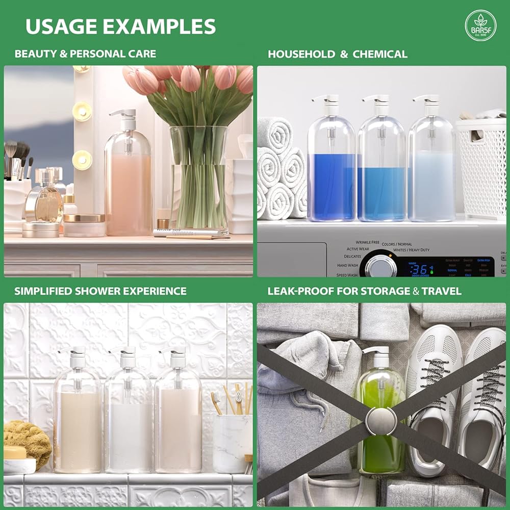زجاجات مضخة الشامبو الفارغة من Bar5F، 32 أونصة، خالية من مادة BPA، 3 عبوات باللون الأبيض