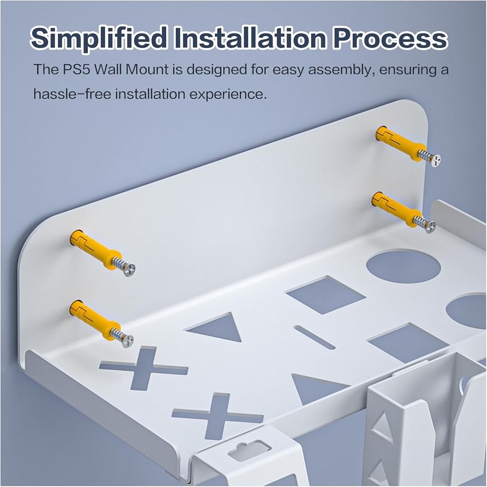 𝗦𝗶𝗺𝗽𝗹𝗶𝗳𝗶𝗲𝗱 𝗜𝗻𝘀𝘁𝗮𝗹𝗹𝗮𝘁𝗶𝗼𝗻 𝗣𝗿𝗼𝗰𝗲𝘀𝘀: جهاز PS5 تم تصميم حامل الحائط لسهولة التجميع، مما يضمن تجربة تركيب خالية من المتاعب. استمتع بسهولة إعداد مساحة الألعاب الخاصة بك بأقل جهد.