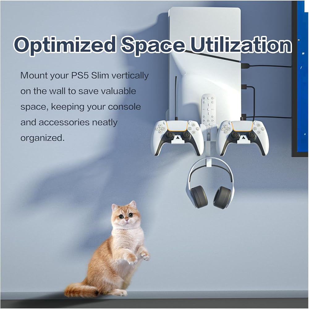 𝗢𝗽𝘁𝗶𝗺𝗶𝘇𝗲𝗱 𝗦𝗽𝗮𝗰𝗲 𝗨𝘁𝗶𝗹𝗶𝘇𝗮𝘁𝗶𝗼𝗻: قم بتثبيت جهاز PS5 Slim الخاص بك عموديًا على الحائط لتوفير مساحة قيمة، مع الحفاظ على وحدة التحكم الخاصة بك الملحقات منظمة بدقة. يرجى ملاحظة أنه مصمم حصريًا لجهاز PS5 Slim وغير متوافق مع وحدة تحكم PS5 الأصلية.