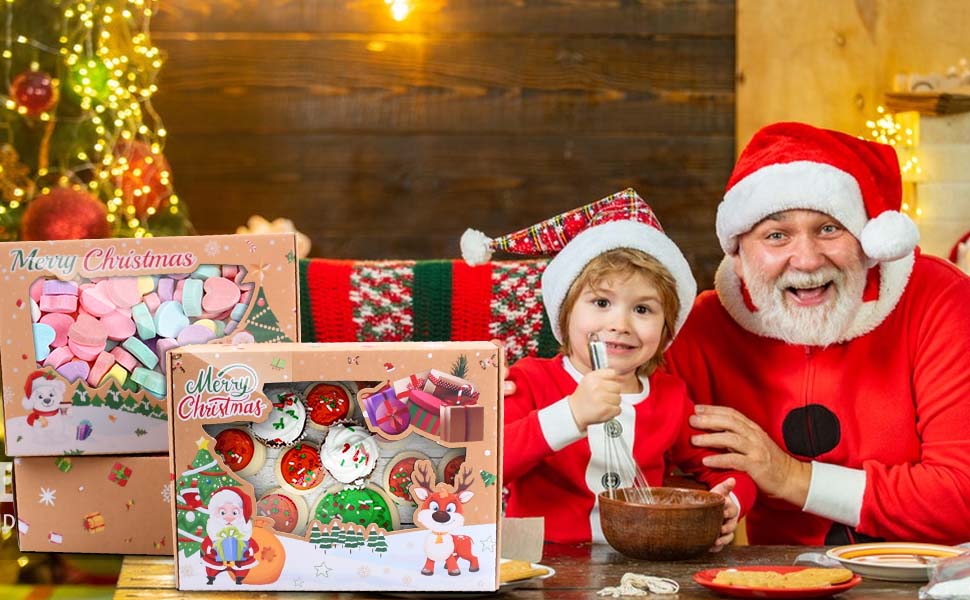【هدايا جذابة لعيد الميلاد/العطلات - نجاح كبير】مثالية لإهداء البسكويت وقضبان البسكويت وحلوى عيد الميلاد والأشياء الجيدة والكب كيك. كعكة الشوكولاتة والفراولة والكعك وما إلى ذلك لزملائك وجيرانك وعملائك وزملاء العمل والأصدقاء والعائلة والموظفين والمعلمين. يمكنك استخدامه لتزيين حفلة عيد الميلاد مما يزيد من أجواء الاحتفالات أيضًا.