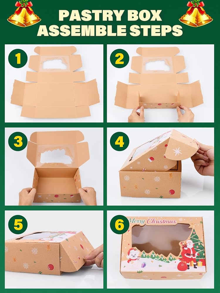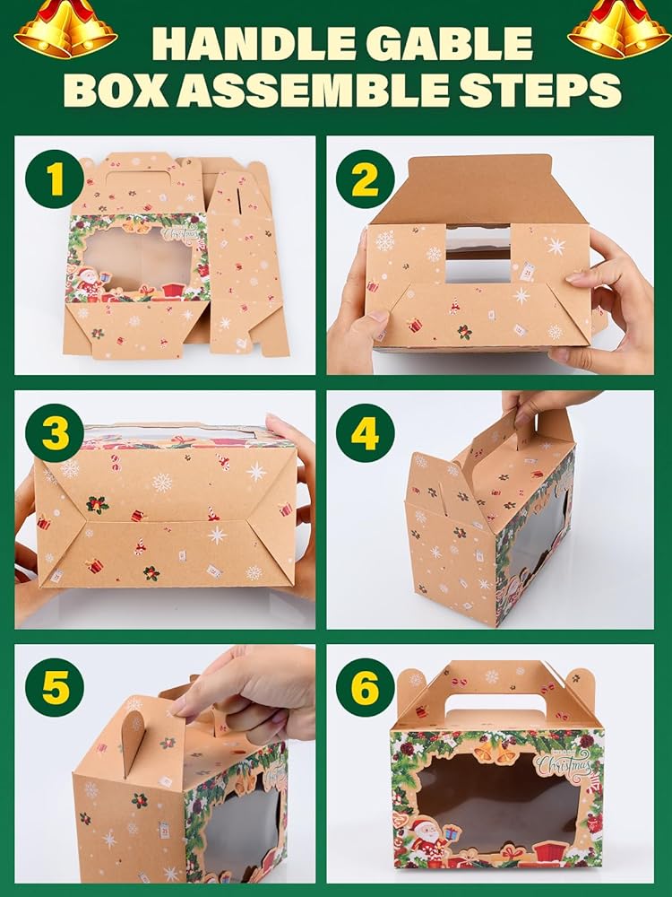 【هدايا راقية بتصميمات لطيفة】تم تشكيل لوحة رؤية السيلوفان بذكاء لتتناسب مع التصميم الموجود على كل صندوق وتسمح للمستلمين بمعرفة المحتويات الرائعة الموجودة بداخلها. مظهر بسيط مع ورق كرافت وتصميمات العطلات، لا حاجة لمزيد من الزخرفة. ومن الممتع تعبئة كعكات عيد الميلاد محلية الصنع.