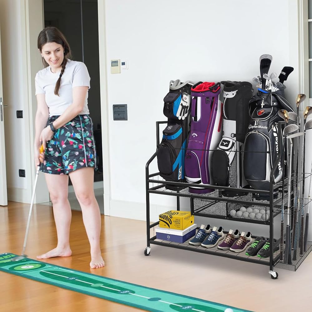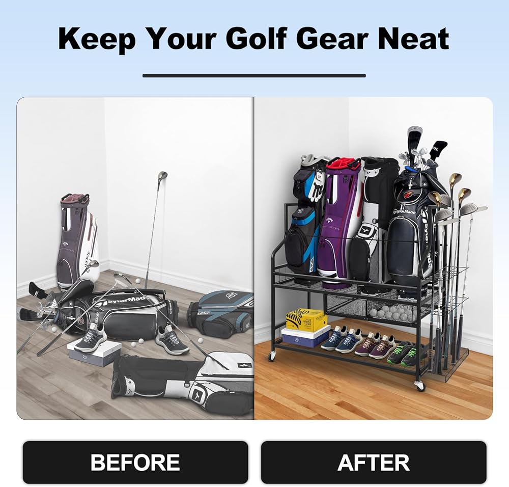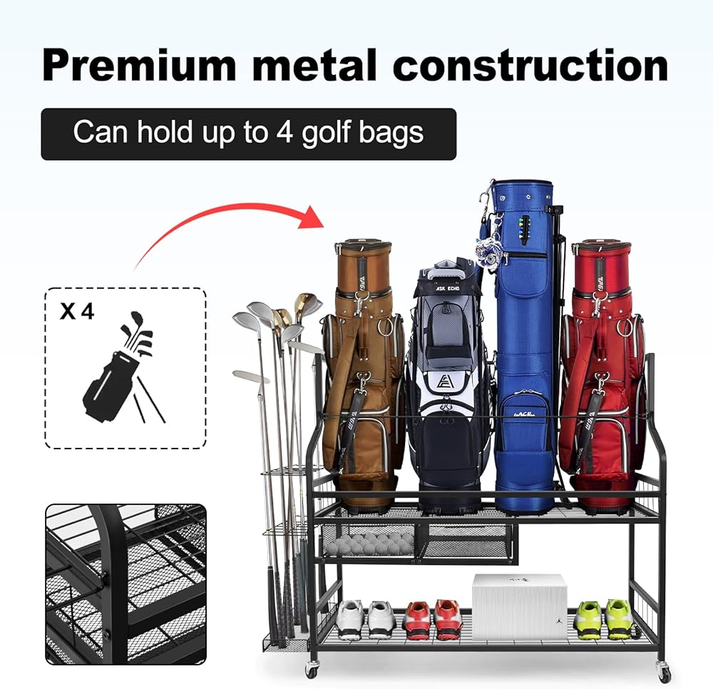 【مساحة تخزين كبيرة للجولف】مصممة لاستيعاب ما يصل إلى 4 حقائب جولف، إلى جانب الكرات والأحذية والإكسسوارات، مما يضمن تخزين جميع أساسيات الجولف الخاصة بك بشكل أنيق في مكان واحد مناسب.