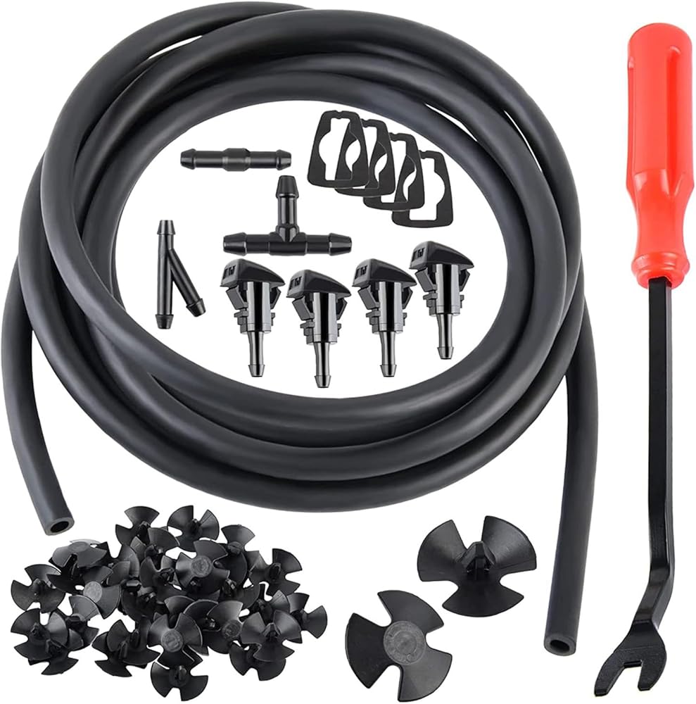 Hawyet 42 In 1 Windshield Washer Nozzles Kit, # 4805742AB 5116079AA Fluid Hose Connector, With 6.5 Ft Hose, 4 Sprayer Nozzles, Washers, 3 Connectors, 30 Retainers, Fits Dodge, Chrysler, Jeep (Black)