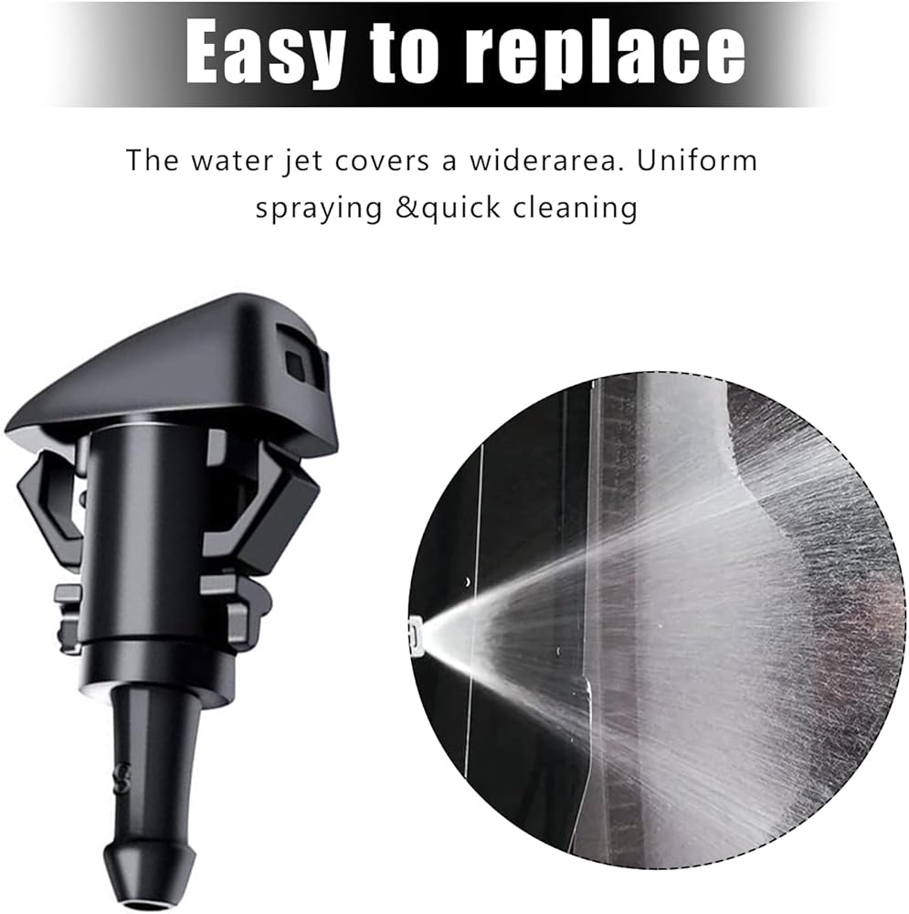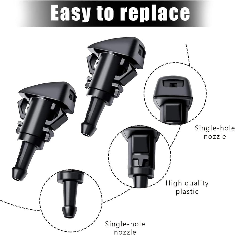 • Functionality: The front windshield washer nozzles kit provide a steady stream of water or cleaning fluid to help remove dirt and debris from the vehicle windshield. This can improve visibility while driving, reduce the risk of accidents and improve driver safety.