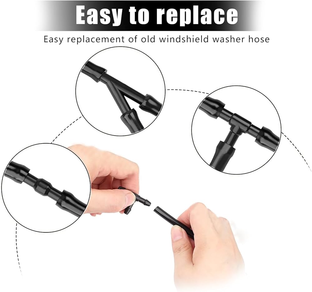 • Design: Made of industrial grade high-quality plastic and soft rubber, our windshield washer hose kit has a sturdy construction and superior durability. Premium and flexible rubber washer fluid hose can be cut to any length to connect washer nozzles and water pump, enough for you to use for a long time.