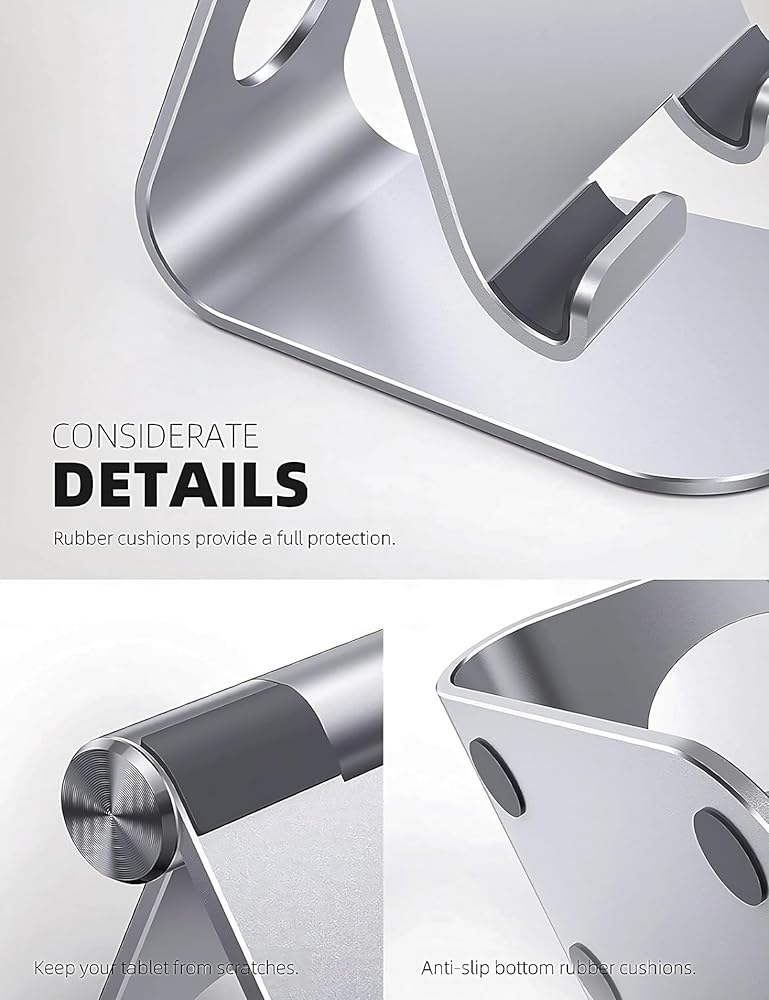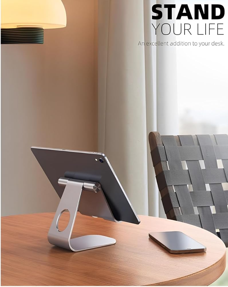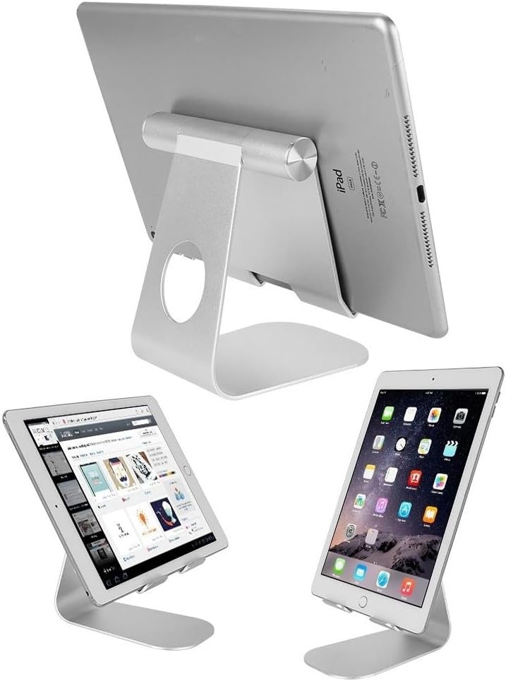 • 🔄 زوايا عرض قابلة للتعديل: حامل الكمبيوتر اللوحي القابل للتعديل يمكن تعديله بسهولة، ويدعم المشاهدة الرأسية والأفقية، قم بتخصيص الزاوية للحصول على الراحة المثالية وتجربة المشاهدة.