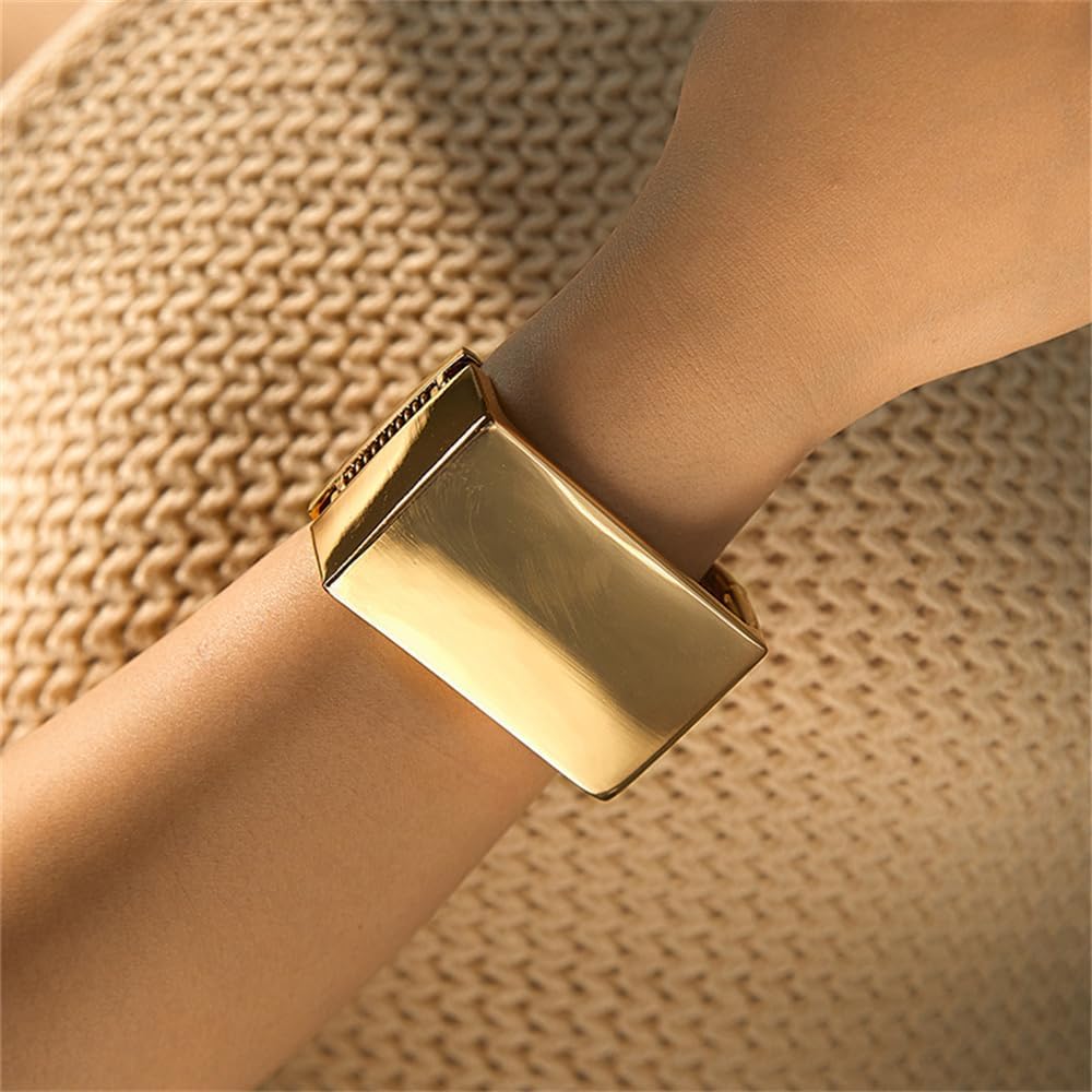 سوار عصري: هذا السوار المعدني الذهبي الكبير مثالي لأي ملابس لديك، ويظهر أناقتك وسحرك الفريد. ارتدي هذه الأساور الأنيقة، وستكونين واثقة من نفسك وستبرزين بين الناس.