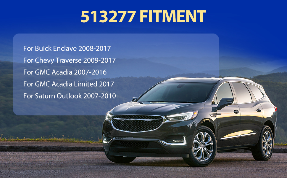 مركبة التوافق - استبدال مجموعة محور العجلات 513277 لـ Buick Enclave 2008-2017، لـ Chevy Traverse 2009-2017، لـ GMC Acadia 2007-2016، لـ GMC Acadia Limited 2017، لـ Saturn Outlook 2007-2010. يضمن تركيبه الذي تم اختباره على السيارة الملاءمة المناسبة والأداء الممتاز، مما يطيل عمر منتجك.