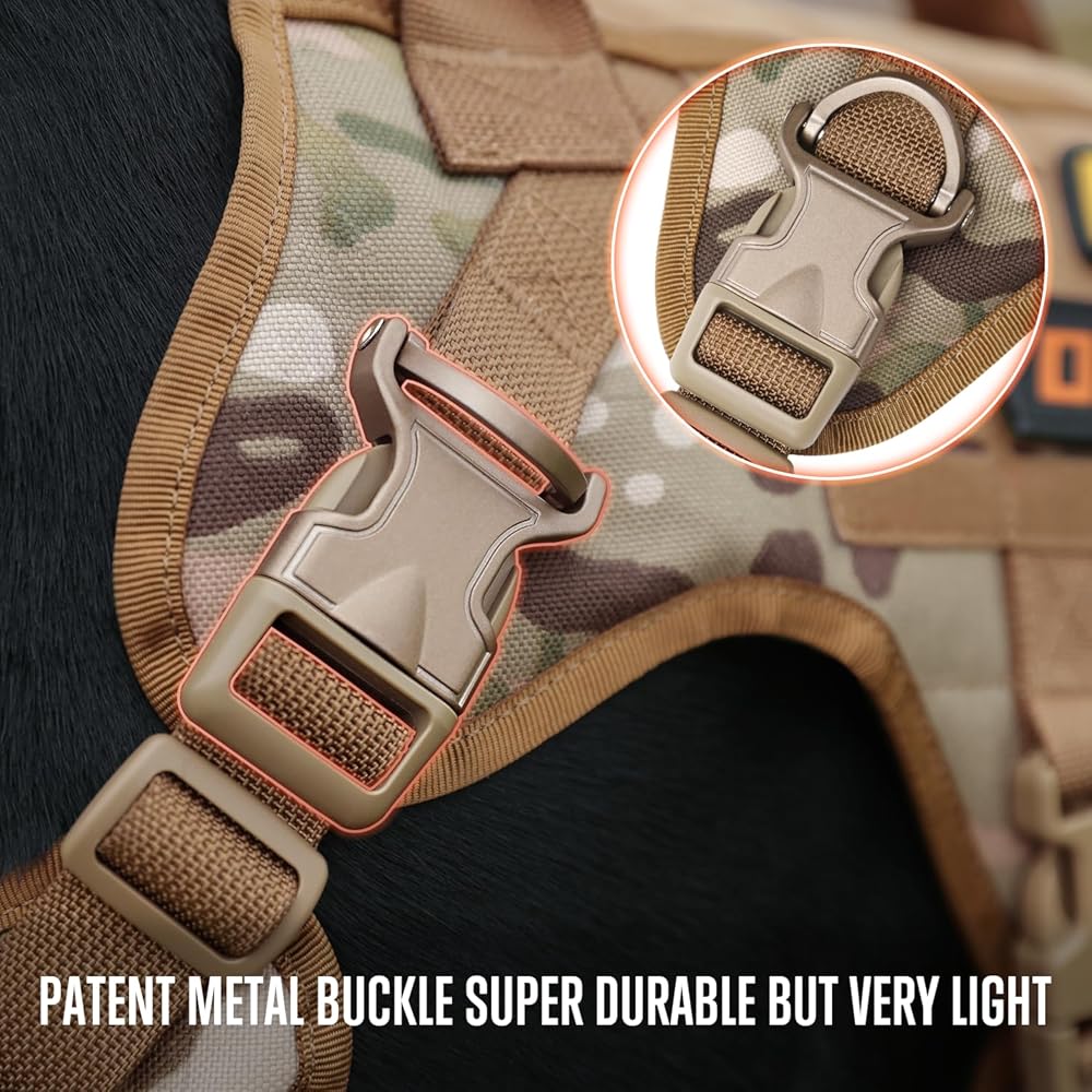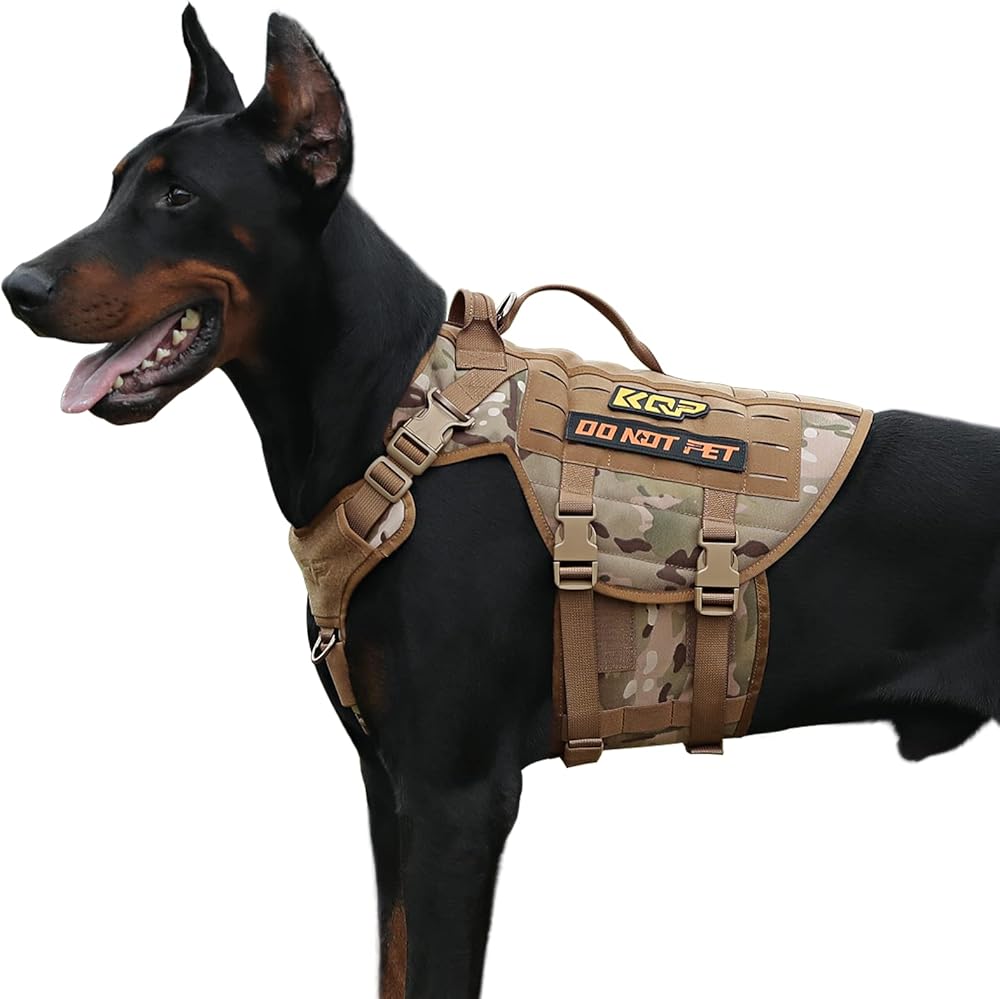 سرج للكلاب بدون سحب - سرج تكتيكي للكلاب - سترة عسكرية للكلاب مع مشابك معدنية قابلة للتعديل، سترة تدريب على المشي لمسافات طويلة للحيوانات الأليفة - سرج للكلاب الكبيرة، كلب الخدمة، مموه