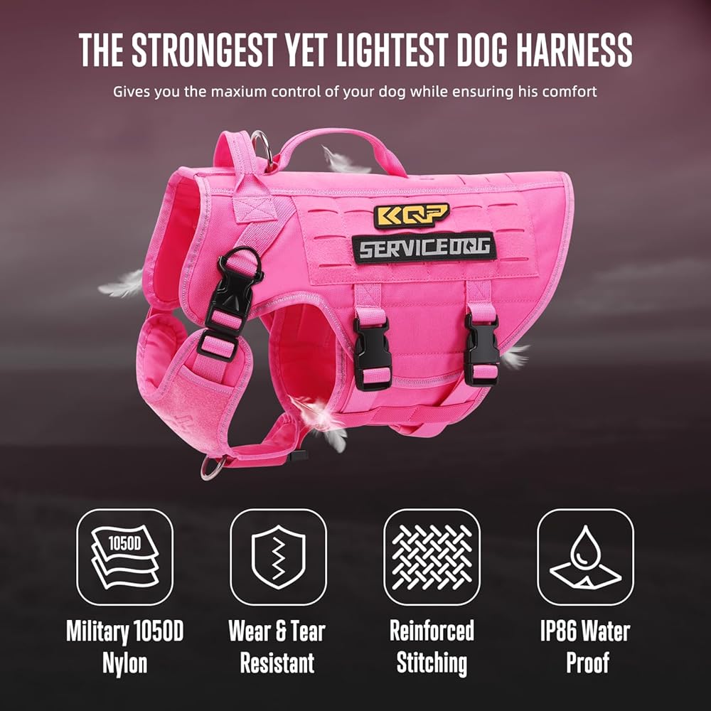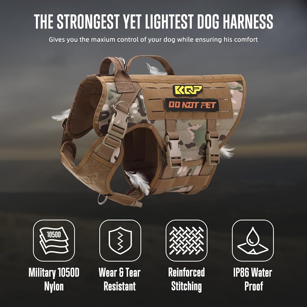 • سهل الاستخدام - يضمن تصميمنا ارتداءً خاليًا من المتاعب بفضل إغلاق الفيلكرو على البطن. يتميز الجزء الخارجي بشريط سحري مقطوع بالليزر لملحقات MOLLE، بينما يساعد المشبك الأمامي في التدريب أثناء المشي. يُعد مشبك المقود الخلفي مثاليًا للنزهات غير الرسمية والركض والمشي لمسافات طويلة. توفر المقابض المزدوجة قبضة آمنة وتجعلها مناسبة بشكل خاص للسلالات الأكبر حجمًا والقوية مثل الراعي الألماني، وألاسكا مالاموتس، ولابرادور، ونيوفاوندلاندز، ودوبيرمان، وروتويللر، وبلدغ الكبيرة.