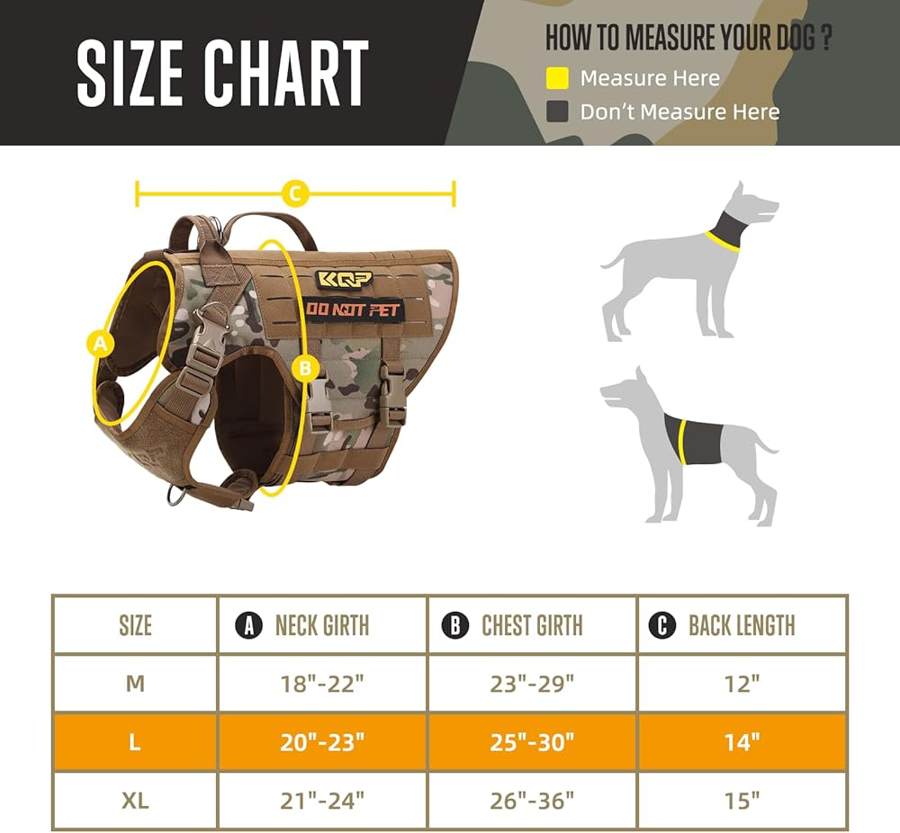 • الحجم مهم - تجنب خيبة الأمل: قبل الشراء، يرجى قياس كلبك بعناية لاختيار المقاس المناسب، بناءً على جدول مقاسات KQP، M: 18 بوصة - 22 بوصة (الرقبة)؛ 23 بوصة - 29 بوصة (الصدر)؛ 12 بوصة (الظهر) كبير: 20 بوصة - 23 بوصة (الرقبة)؛ 25 بوصة - 30 بوصة (الصدر)؛ 14 بوصة (الظهر) XL: 21 بوصة - 24 بوصة (الرقبة)؛ 26 بوصة - 36 بوصة (الصدر)؛ 15"(الخلف).