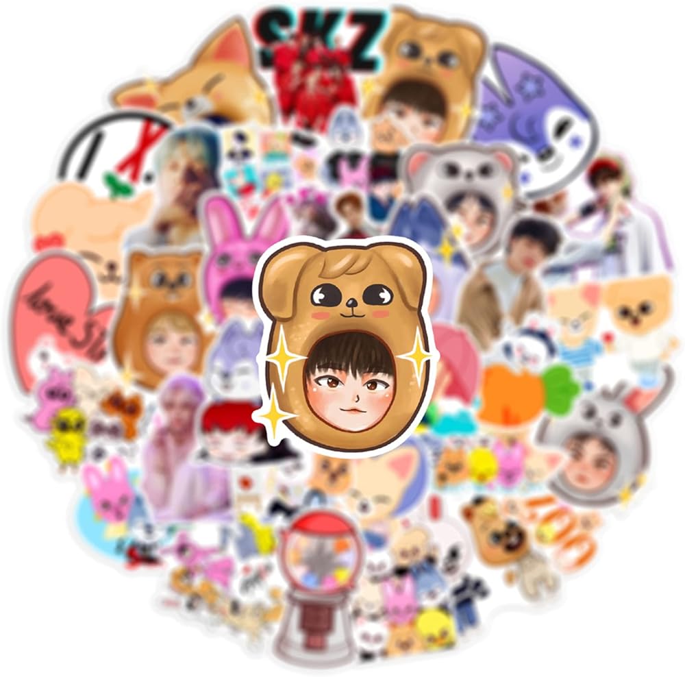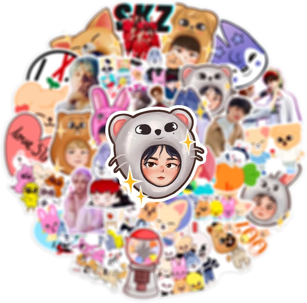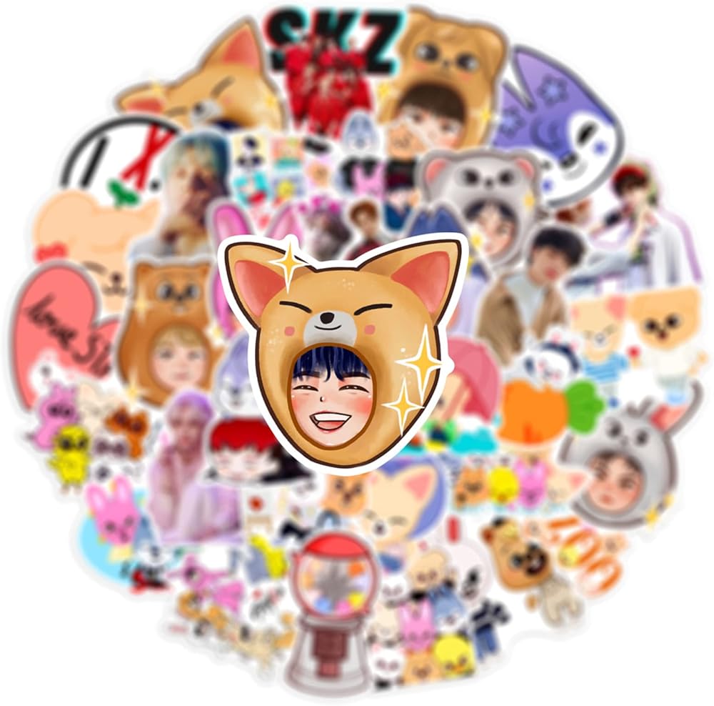 50 Pcs Popular Singer Stray Kids Skzoo Stickers Pack, Waterproof Vinyl Stickers for Water Bottle, Laptop, Skateboard, Helmet, Car Decals, Perfect Gifts for Kids,Teens,Girls,Adults (Stray Kids Skzoo)