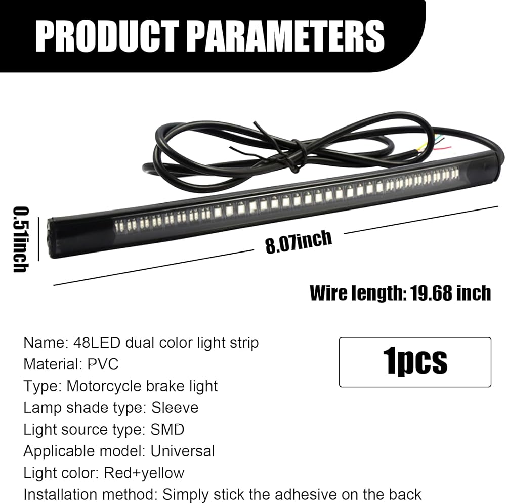 Specifications: This one-piece tail light measures 8.26" x 0.51", and the cord length is 19.68". Please note that in order to confirm this product is suitable for you, please confirm the size before purchasing.