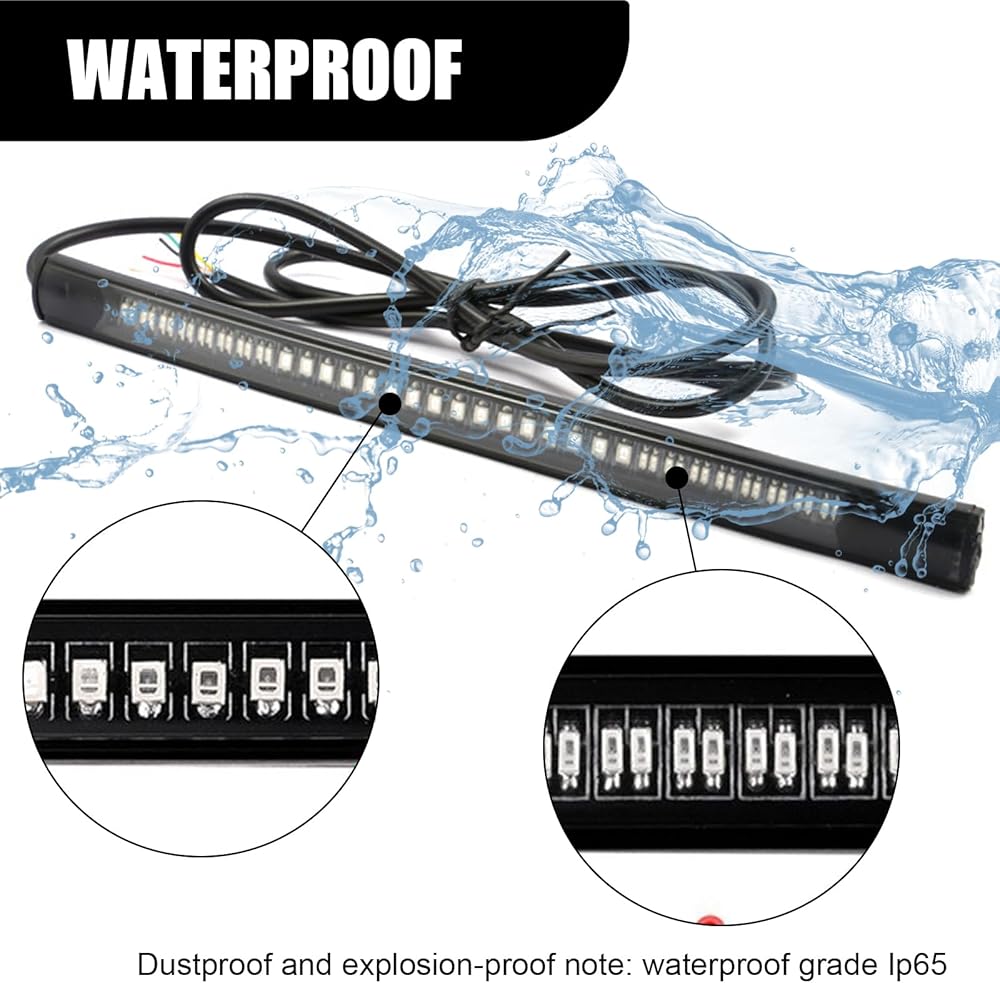 High Brightness: Using 16pcs 2835SMD LEDs and 32pcs 3014SMD LEDs as the light source, it provides powerful lighting effect and high brightness output. This enables vehicles and pedestrians behind the vehicle to clearly see the tail light signal, increasing driving safety.