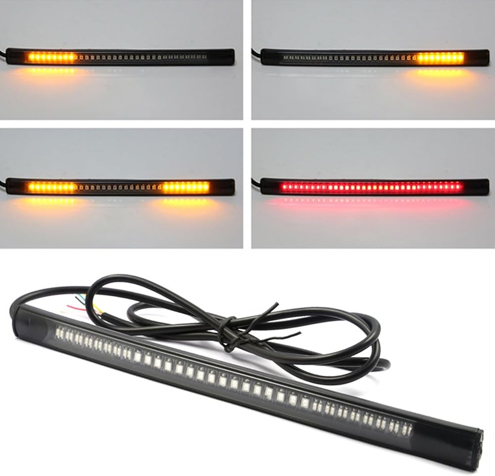 Lighting Display: This light bar has obvious color differences, low-bright red light when driving, high-bright red light when braking, and flashing yellow light of the turn signal. It is equipped with integrated brake and steering to improve driving safety performance.