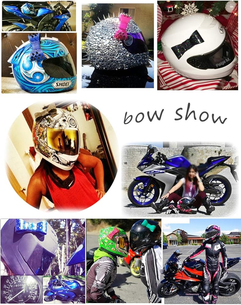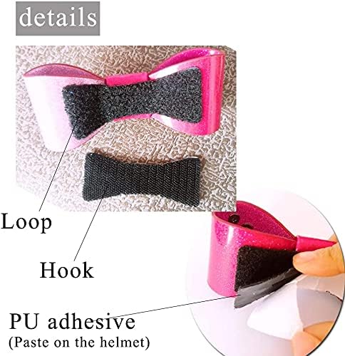 عقدة للخوذة مع خوذة كريستالية فيونكة وردية للدراجات النارية وخوذات التزلج على الجليد وحفلات الهالوين وحفلات الهالوين وخوذة شعر مستعار وزينة فيلكرو وتصميم قابل لإعادة الاستخدام (الخوذة غير متضمنة)