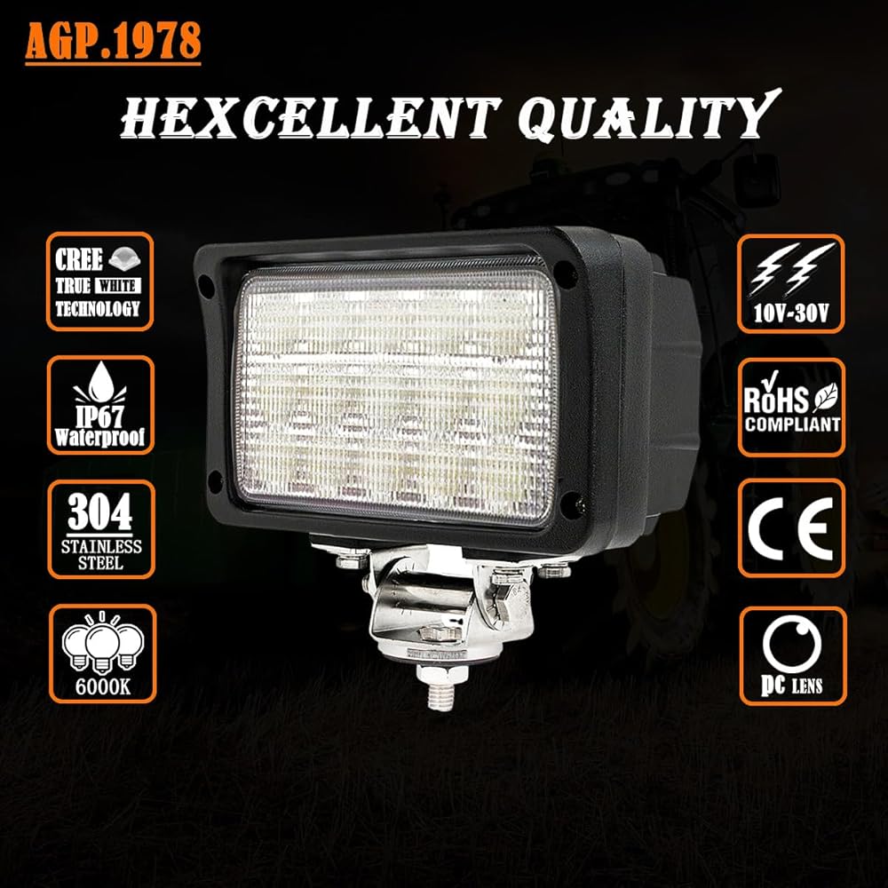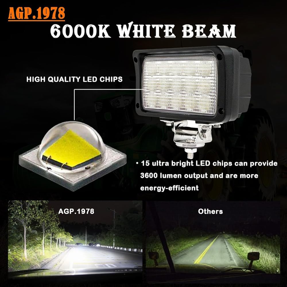 رؤية فائقة: مصباح عمل LED خلفي للكابينة بقدرة 45 وات، أكثر سطوعًا من المصنع الأول، 6000 كلفن جيد للعمل ليلاً، وهذا يحسن الرؤية ويمكّن المشغلين من أن يكونوا آمنين ومنتجين.