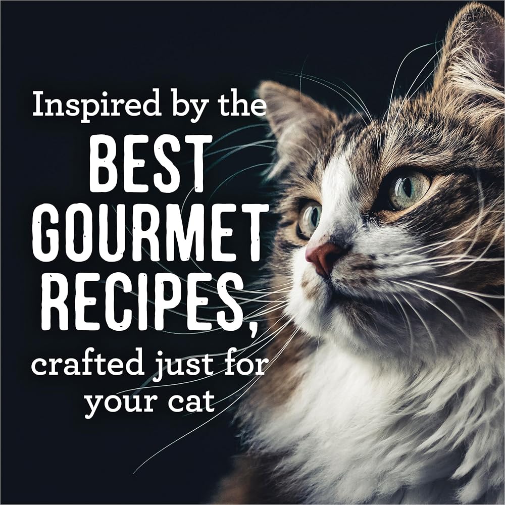 Elevate your cat's mealtime with Purrfect Bistro Soirees grain free wet cat food variety pack with two cans each of Chicken a la King, Chicken Divan, and Turkey Cassoulet recipes. Real deboned chicken or turkey is the first ingredient in these wet cat food gravy recipes. These delicious chunky gravy cat food wet Soirees are crafted with morsels and paired with real ingredients like carrots and peas, in a delicate gravy sauce. Offering natural, with added vitamins, minerals, and nutrients, cat food inspired by the best gourmet recipes, our premium canned cat food comes in conveniently portioned adult cat food cans, packed with protein and nutrients for elevated nourishment. Merrick wet cat food grain free recipes are crafted with a holistic blend of real foods, taurine, vitamins and minerals for cats, offering healthy cat canned food with no wheat or artificial flavors or preservatives. Merrick grain free wet recipes are proudly founded in Hereford, TX, crafted in USA facilities.
