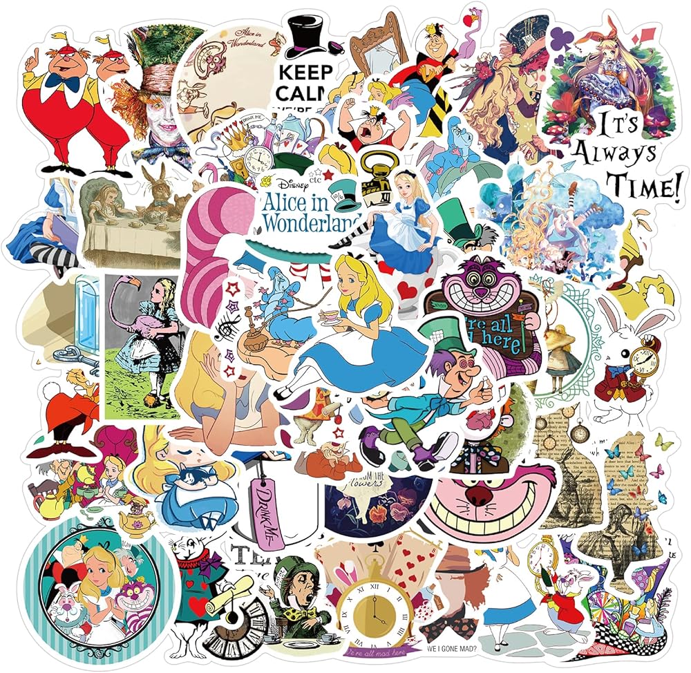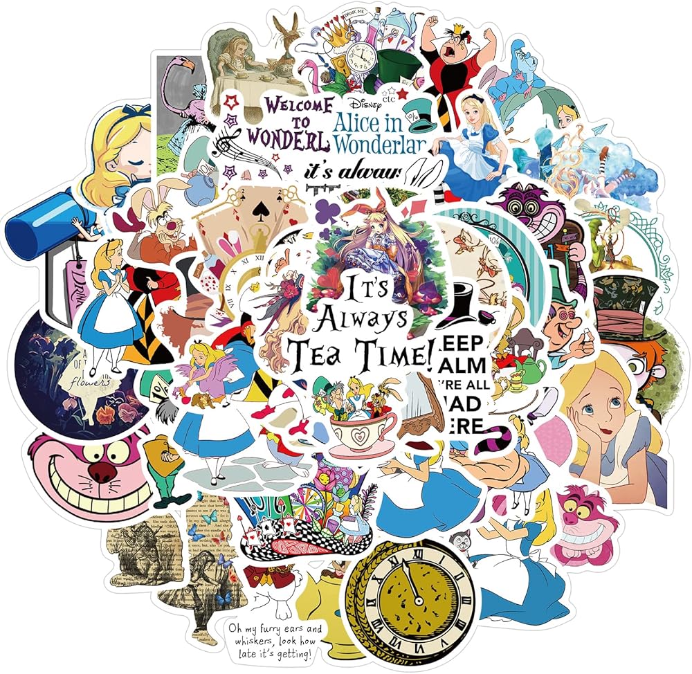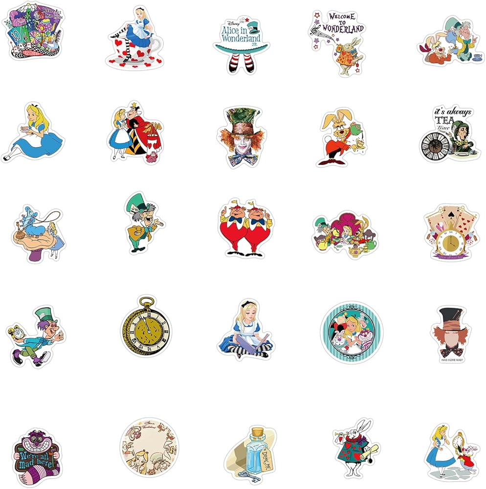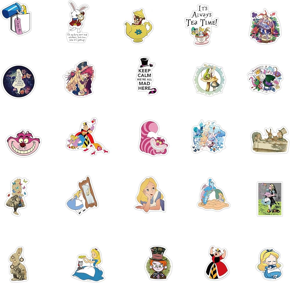 50 Pcs Alice Stickers Pack, Waterproof Vinyl Stickers for Water Bottle, Laptop, Skateboard, Helmet, Car Decals, Perfect Gifts for Kids,Teens,Girls,Adults