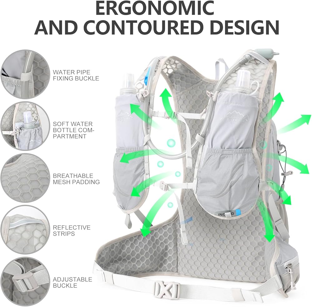 Hydration Backpack, INOXTO Water Backpack with 2L Leakproof Hydration Bladder for Women Men, Lightweight Insulation Hydration Day Rucksack for Hiking, Cycling, Running, Climbing, Camping