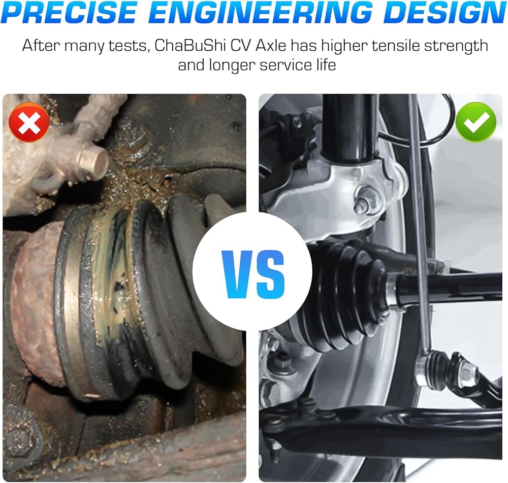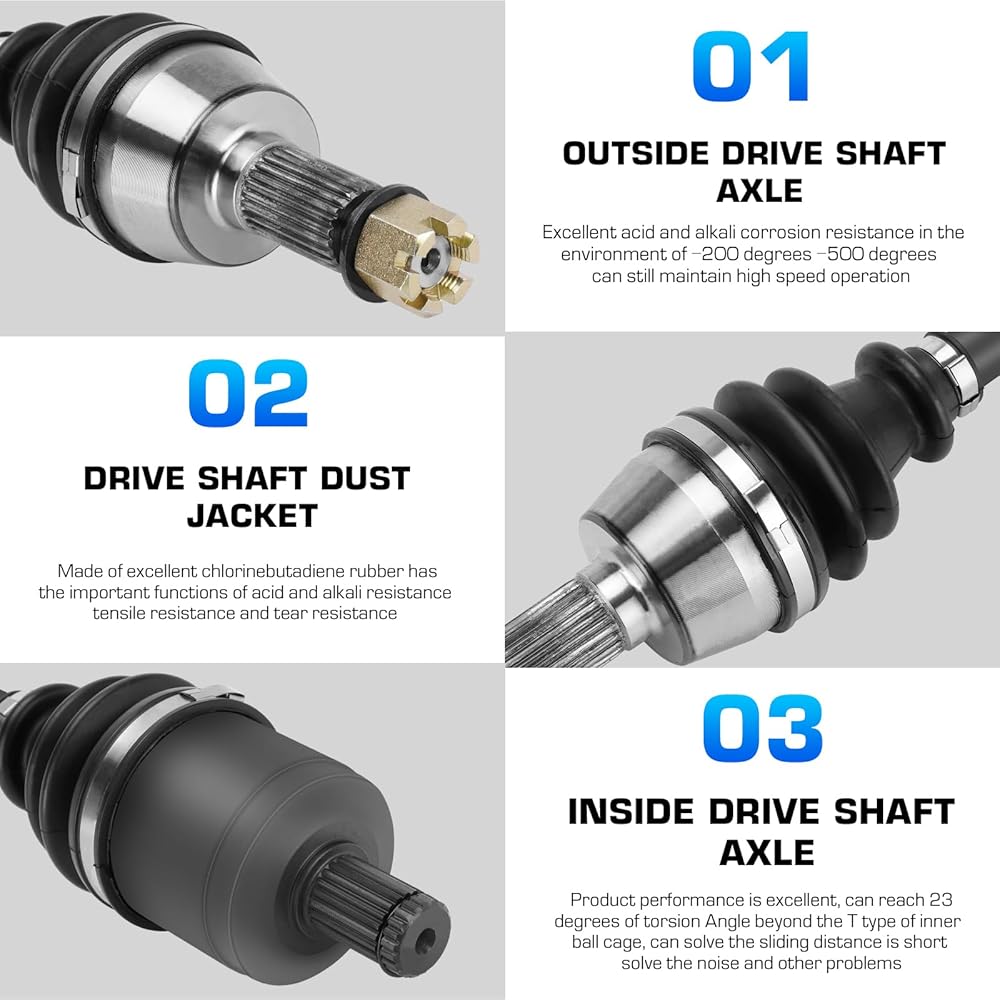 【Good function】Double lip seals made to keep grease in and dirt out. Greased with a moly based grease to provide superior joint lubrication. High speed bearings manufactured for long life. We're confident that our products will work flawlessly once installed in your vehicle.